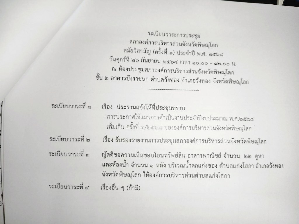 อบจ.พิษณุโลก โป๊ะแตก!! ออกหนังสือเชิญประชุม ขอญัตติความเห็นชอบโอนทรัพย์สินอาคารพาณิชย์ 22 คูหา ให้ อบต.แก่งโสภา
