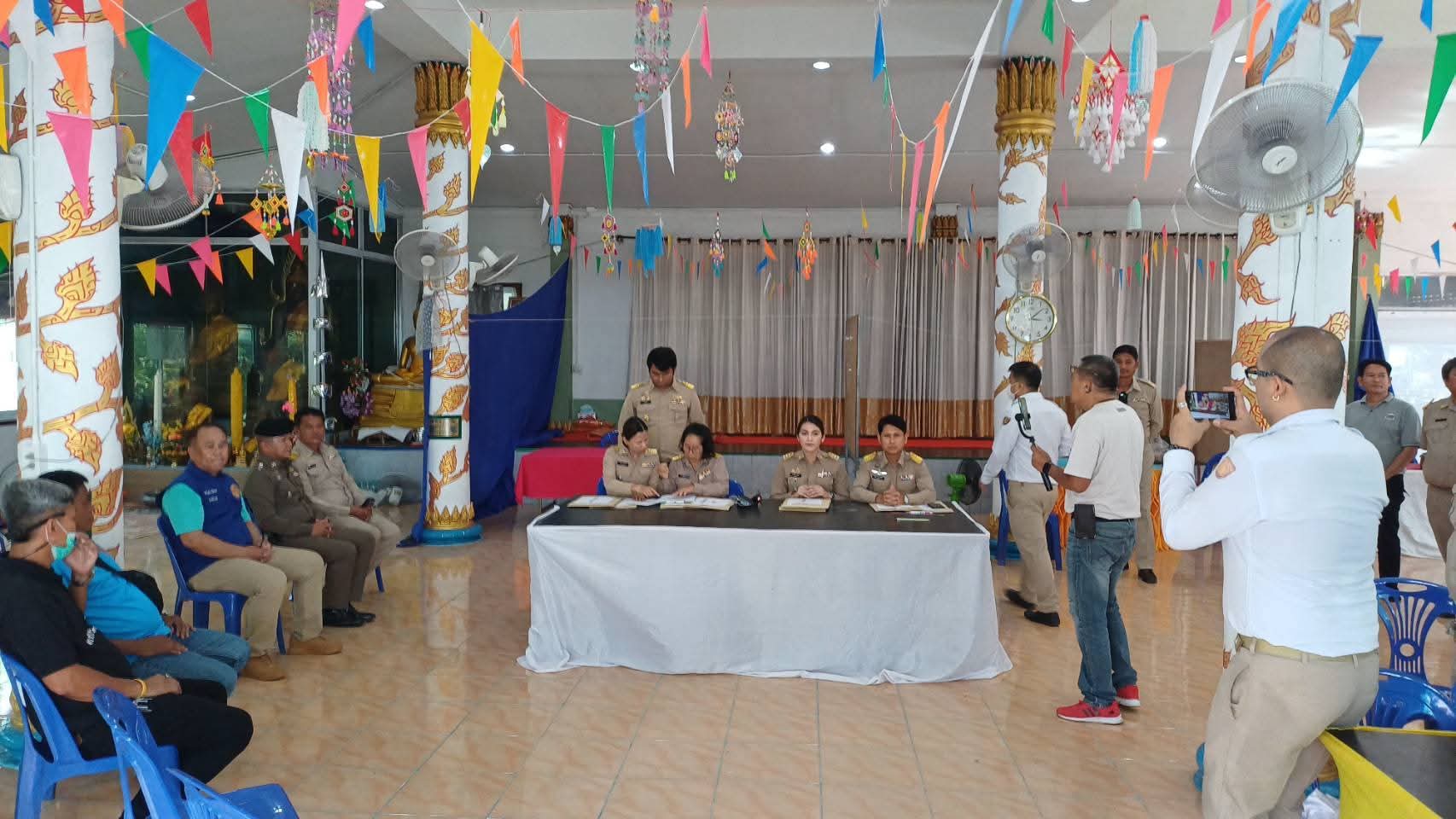 กำหนดให้ ศาลาวัดกลางเปรียญ วัดใหม่พนมทอง เป็นสถานที่ประชุมราษฎรและสอบปากคำยืนยันเจตนารมณ์ โดย ราษฎรที่มีสิทธิเข้าถอดถอนผู้ใหญ่บ้านต้องมีคุณสมบัติ มีสัญชาติไทยและมีอายุไม่ต่ำกว่า 18 ปีบริบูรณ์ ไม่เป็นภิกษุ สามเณร นักพรต หรือนักบวช ไม่เป็นคนวิกลจริต หรือจิตฟั่นเพื่อนไม่สมประกอบ ภูมิลำเนาหรือถิ่นที่อยู่ประจำ และมีชื่อในทะเบียนบ้านตามกฎหมายว่าด้วย การทะเบียนราษฎรในหมู่บ้านนั้นติดต่อกันมาแล้วไม่น้อยกว่า 3 เดือน จนถึงวันเข้าชื่อถอดถอน เพื่อสอบปากคำเพื่อยืนยันเจตนารมณ์การเข้าชื่อถอดถอน ตั้งแต่เวลา 9.00 น. – 15.00 น.วันนี้