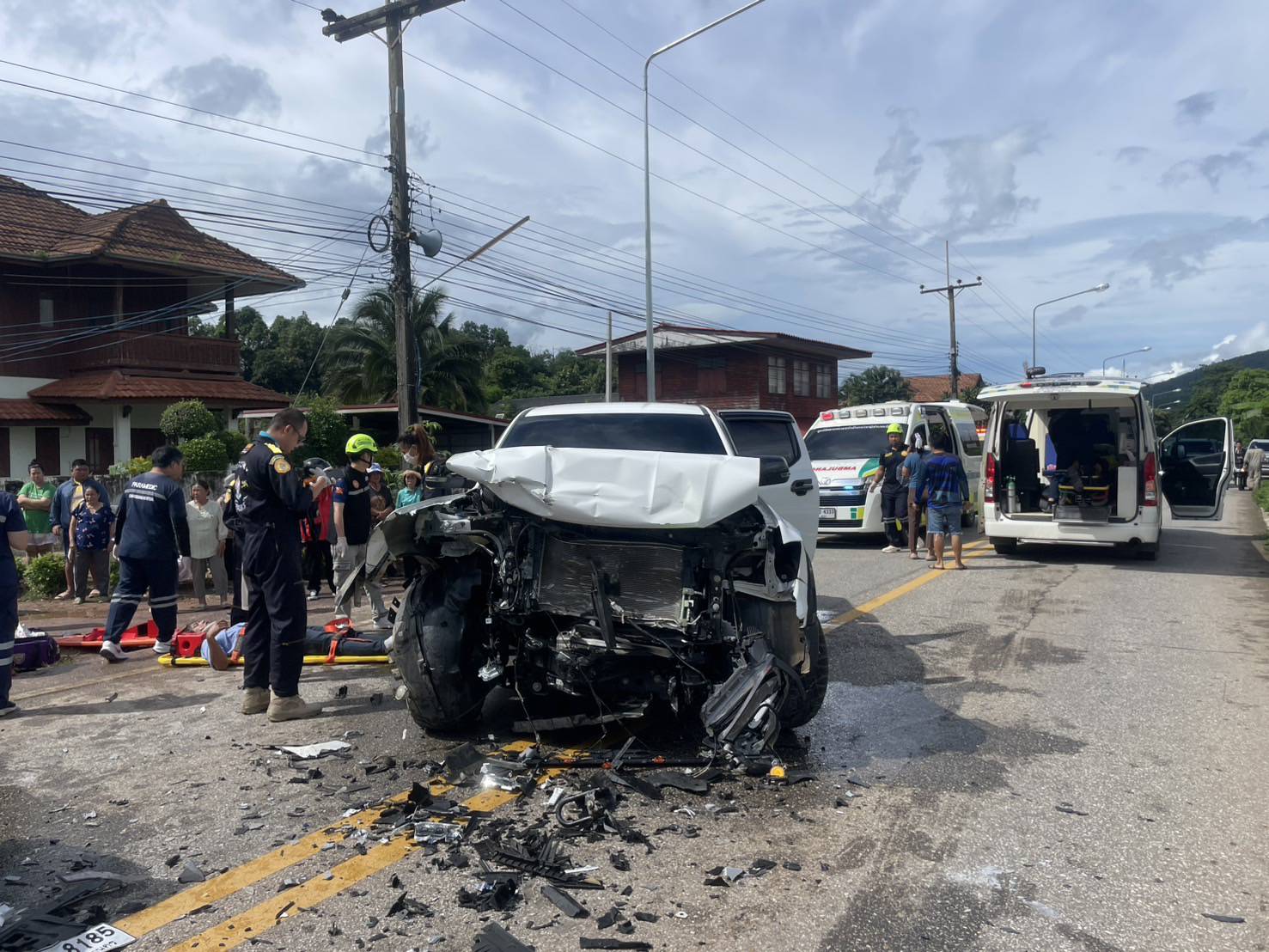 พะเยา ชนสนั่น! กระบะประสานงากลางถนนเชียงคำ ดับคาที่ 1 เจ็บอีก 2