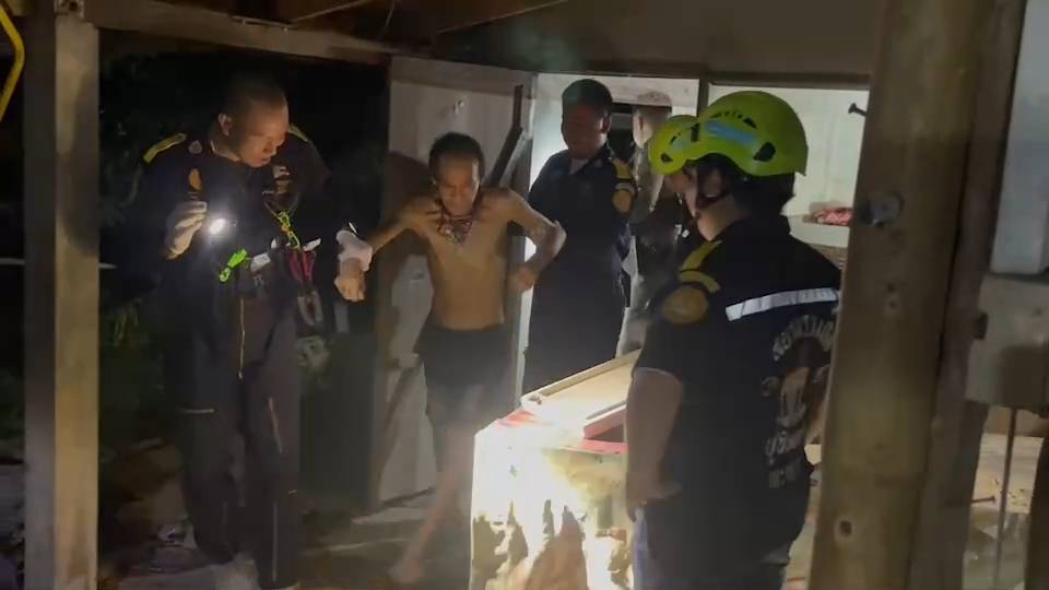 หนุ่มใหญ่วัย 56 คลุ้มคลั่ง พูดเพ้ออาละวาดทุบกระจก–พยายามเผาบ้านตัวเอง เจ้าหน้าที่ช่วยห้ามวุ่น(คลิป)