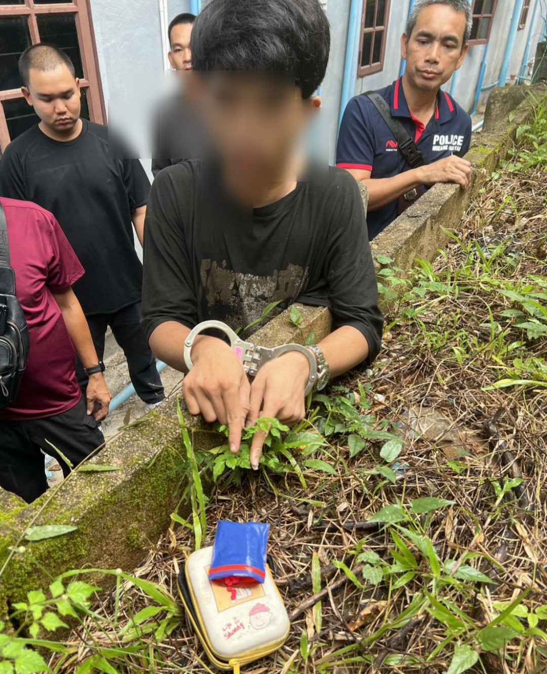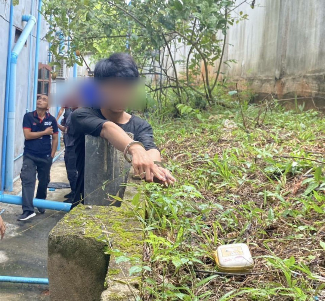 บุกหอพักกลางเมืองรวบหนุ่มวัย 23 ปี พยายามหนีโยนกระเป๋าทิ้ง ก่อนถูกจับยาบ้า 140 เม็ด