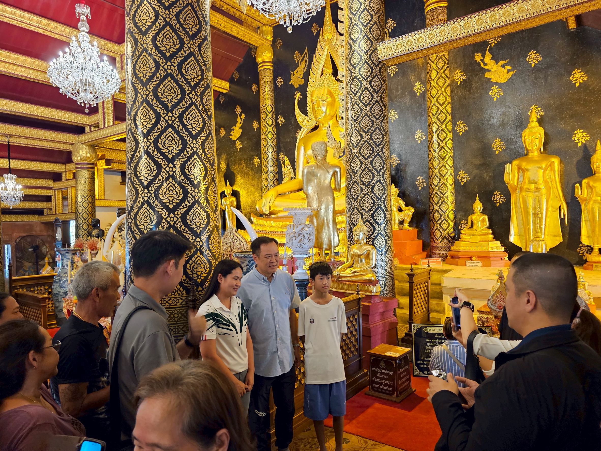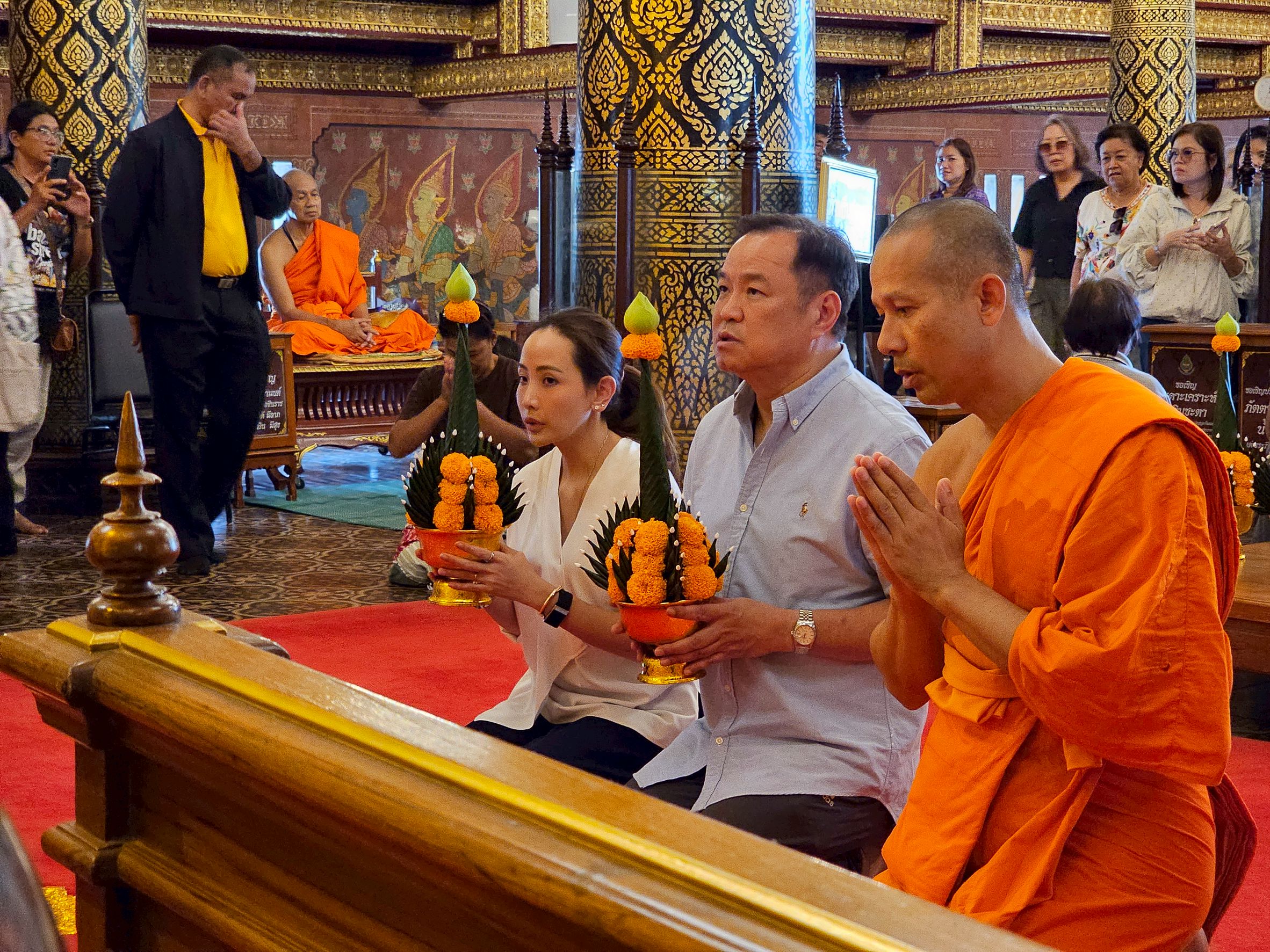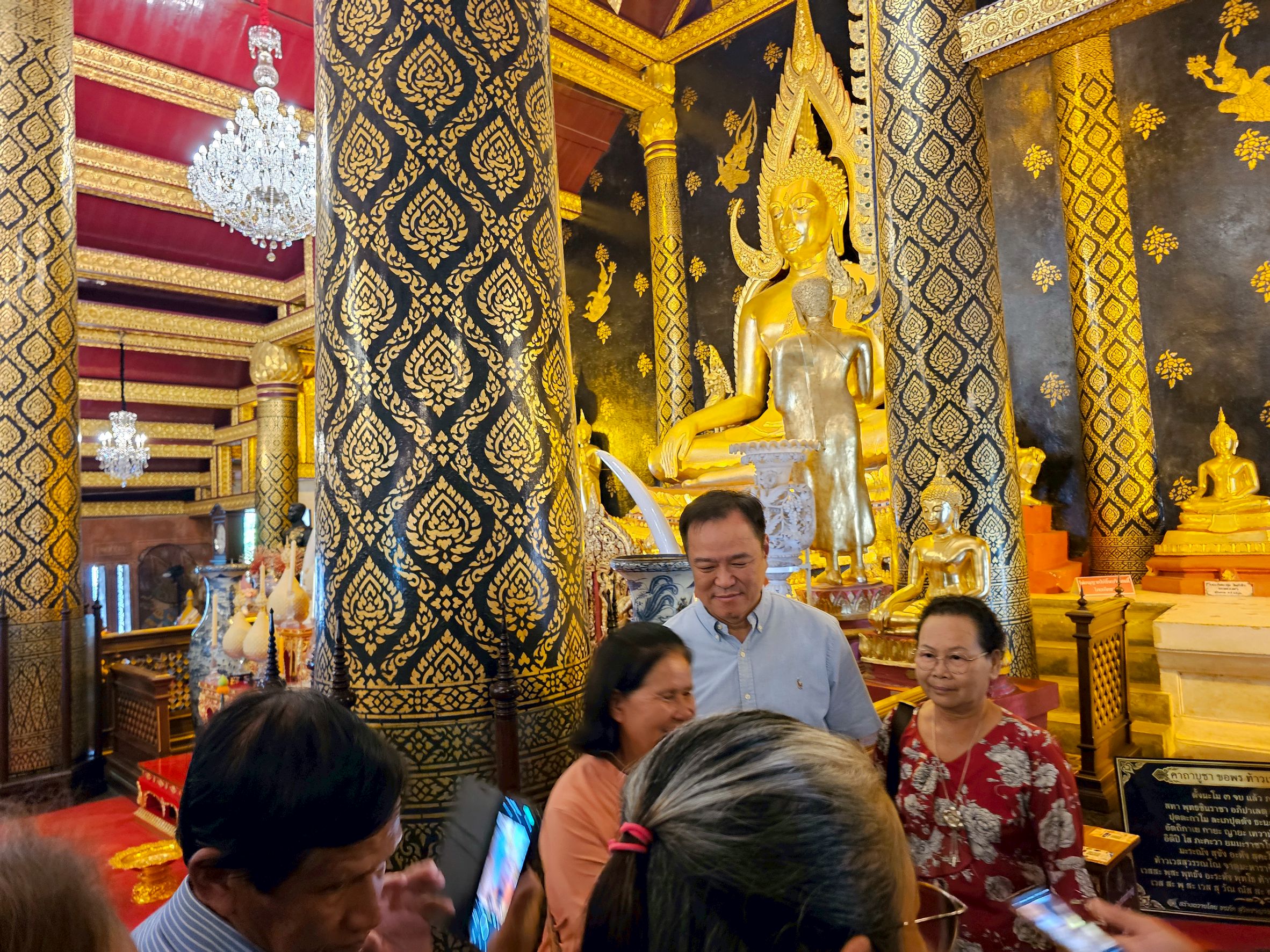 นายอนุทิน นายกฯ ใส่เสื้อแขนสั้นเรียบง่ายสีฟ้า มาพร้อมคู่สมรสใส่เสื้อสีขาว เดินทางเข้ากราบสักการะขอพร พระพุทธชินราช พระพุทธชินสีห์ และท้าวเวสสุวรรณ ภายในวิหารหลวงพ่อพุทธชินราช เปรยว่า เหตุที่มาเยือนพิษณุโลกกระทันหัน ไม่มีอะไร เนื่องจาก ตนนับถือองค์สมเด็จพระนเรศวรและพระพุทธชินราชจึงขอกราบไหว้เป็นการส่วนตัว