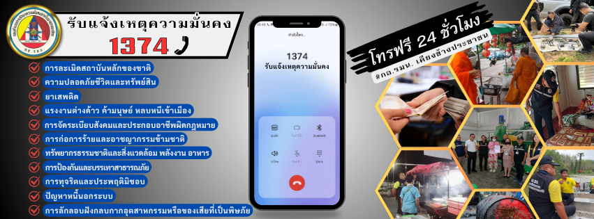 ตามที่ นายกรัฐมนตรี/ผู้อำนวยการรักษาความมั่นคงภายในราชอาณาจักร ได้ดำเนินการเปิดช่องทางให้ประชาชนแจ้งเบาะแสด้านความมั่นคง ผ่านช่องทางการให้บริการ สายด่วน โทร. 1374 และ Facebook : 1374 แจ้งเบาะแส เพื่อความมั่นคง รวมทั้งสนับสนุนให้ทุกภาคส่วนราชการดำเนินการจัดตั้งช่องทางของหน่วยรับแจ้งข้อมูล เพื่อให้ประชาชนได้เข้าถึงอย่างแท้จริง นั้น