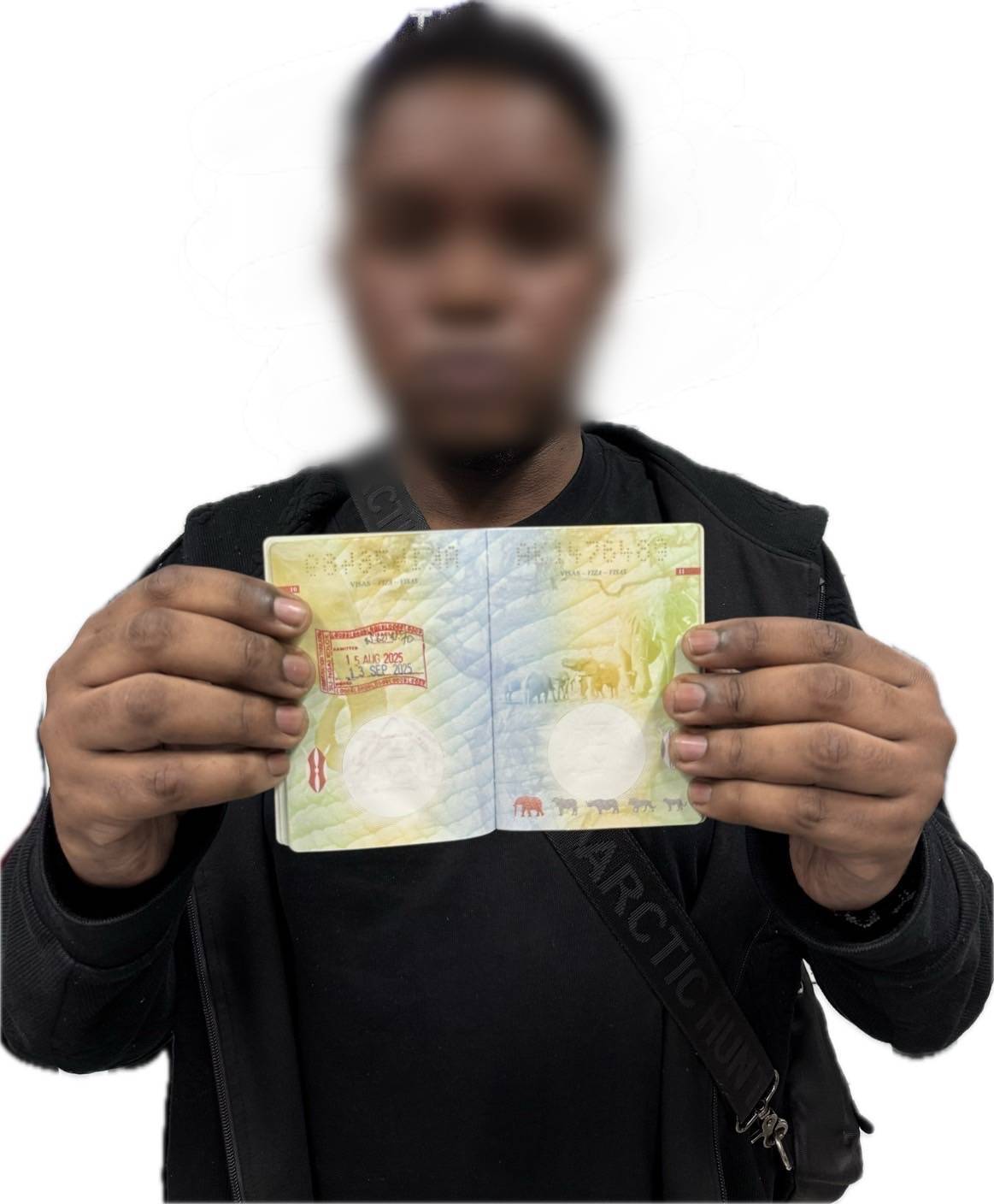 เมื่อวันที่ 21 มี.ค.68 ถูกส่งกลับไปที่ประเทศเคนย่า จากนั้นได้หวนกลับมาหวังทำงานสแกมเมอร์อีกครั้ง ในวันที่ 13 สิงหาคม 2568 ได้เดินทางออกจากประเทศเคนย่า ไปยังประเทศมาเลเซีย เดินทางถึงประเทศมาเลเซียวันที่ 14 สิงหาคม 2568 จากนั้นได้มีกลุ่มขบวนการนำพาเข้ามาในราชอาณาจักรไทยโดยไม่ผ่านช่องทางตรวจอนุญาติอย่างถูกต้องตามกฎหมาย ในวันที่ 15 สิงหาคม 2568 ผู้ถูกจับได้ส่งหนังสือเดินทาง (ของกลาง) ให้กับชายไทยไม่ทราบชื่อ เพื่อนำหนังสือเดินทางดังกล่าวไปตีตราประทับปลอมเพื่อใช้เดินทางในราชอาณาจักรไทย