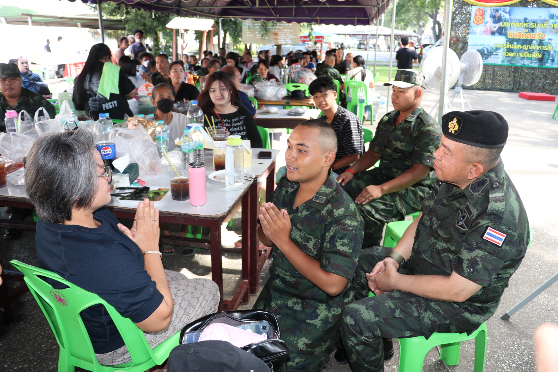 พร้อมกันนี้ นางนงนุช วัชรจิตบวร ประธานสมาคมแม่บ้านทหารบก สาขามณฑลทหารบกที่ 39 และสมาชิก ได้ลงพื้นที่ตรวจเยี่ยมการดำเนินกิจกรรม เยี่ยมญาติทหารใหม่ ซึ่งมีญาติทหารใหม่กว่า 100 ครอบครัว เดินทางมาเข้าร่วมกิจกรรมอย่างอบอุ่นและได้มอบริบบิ้นสีดำให้กับญาติทุกคน แสดงความอาลัยและถวายสักการะแด่สมเด็จพระนางเจ้าสิริกิติ์ พระบรมราชชนนีพันปีหลวง