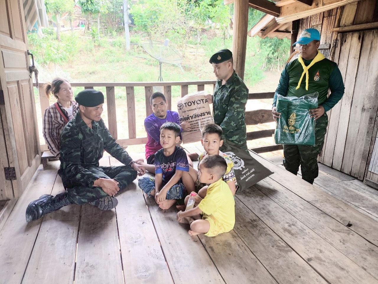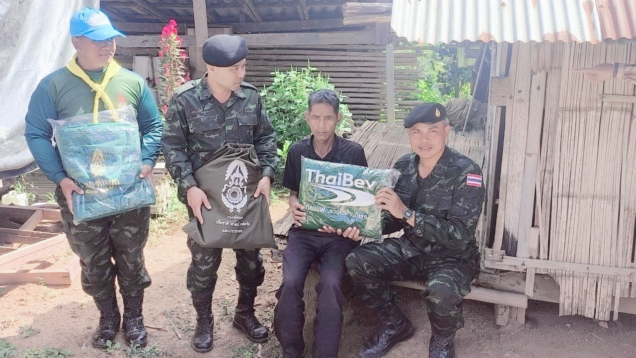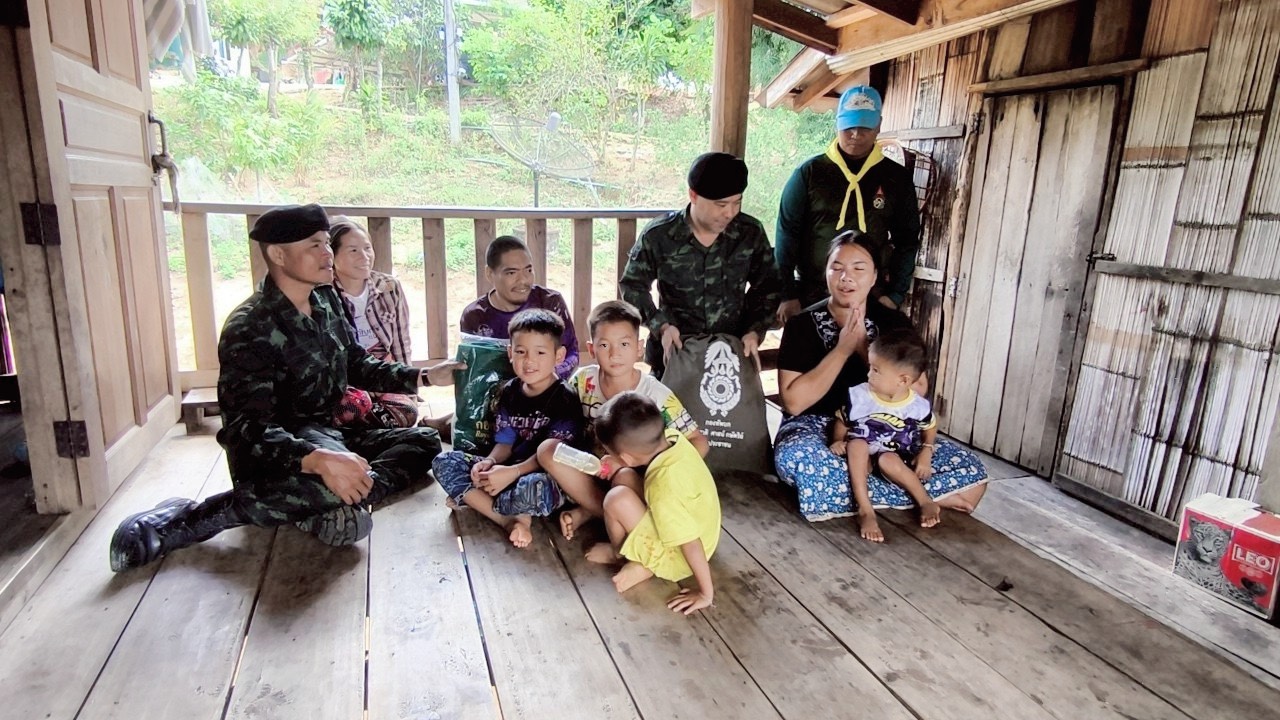 ด้วยการมอบผ้าห่มกันหนาวและถุงยังชีพพระราชทานให้กับครอบครัวของ นายเจริญ แออู่ อายุ 37 ปี บ้านเลขที่ 251 พิการทางขาเดินไม่ได้ โดยได้พักอาศัยอยู่กับครอบครัว จำนวน 6 คน และครอบครัว นายจะป๋าเดา จะนู อายุ 52 ปี บ้านเลขที่ 47 เป็นผู้ป่วยจิตเวช โดยได้พักอาศัยอยู่กับครอบครัว จำนวน 2 คน และครอบครัว นายจะลอ จะแฮ อายุ 65 ปี บ้านเลขที่ 279 พิการทางสายตา โดยได้พักอาศัยอยู่กับครอบครัว 3 คน ซึ่งทั้ง 3 ครอบครัว มีฐานะค่อนข้างยากจน การดำรงชีวิตประจำวันมีความยากลำบาก ไม่มีรายได้ประจำ ครอบครัวจึงจำเป็นต้องอาศัยการรับจ้างทั่วไป เช่น ปลูกข้าว ถางหญ้า ตัดไม้ แบกหามต่างๆ เพื่อเป็นการช่วยเหลือและบรรเทาความเดือดร้อนแก่ประสบความทุกข์ยาก จึงได้มอบถุงยังชีพพระราชทาน จำนวน 3 ถุง และผ้าห่มกันหนาวจาก ทบ. จำนวน 10 ผืน เนื่องจากห้วงนี้กำลังจะเข้าสู่ฤดูหนาว จึงได้รับผลกระทบจากสภาพอากาศหนาวเย็น พร้อมทั้งให้กำลังใจกับครอบครัว ขอให้สู้ต่อไป และหากมีอะไรให้ทหารได้ช่วยเหลือทางหน่วยยินดีให้ความช่วยเหลือเต็มขีดความสามารถ