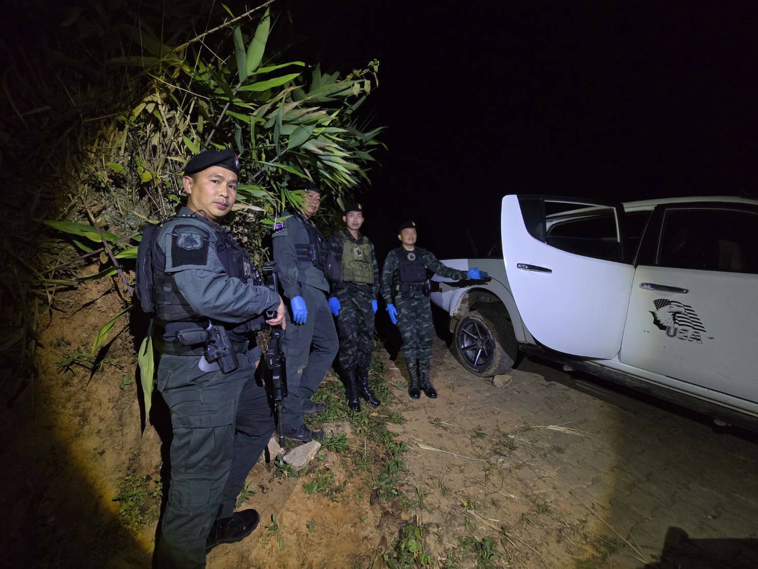 วันที่ 2 ธ.ค. 68 ที่ผ่านมา เวลา 19.00 น. เจ้าหน้าที่ทหาร ร้อย.ม.1 ฉก.ทัพเจ้าตาก ร่วมกับ ร้อย.ตชด.327 จัดกำลัง จำนวน 1 ชป. ทำการตั้งจุดสกัดเพื่อป้องกันและสกัดกั้นการกระทำผิดตาม พ.ร.บ.ประมวลกฎหมายยาเสพติด พ.ศ.2564 บริเวณ บ.เล่าวาง บริวาร บ.แม่หม้อ (NC 669 474) หมู่ 7 ต.เทอดไทย อ.แม่ฟ้าหลวง จ.เชียงราย ขณะปฏิบัติหน้าที่ได้ตรวจพบ รถต้องสงสัย 1 คัน ทราบภายหลัง รถกระบะ ยี่ห้อ มิตซูบิชิ รุ่น ไทรทัน สีขาว หมายเลขทะเบียน กล 841 ช.ม. ขับรถเข้ามาบริเวณเส้นทางจุกสกัดกั้นยุทธศาสตร์ เจ้าหน้าที่จึงได้แสดงตัวเพื่อขอทำการตรวจค้น แต่คนขับคันดังกล่าวได้ใช้อาวุธไม่ทราบชนิดยิงใส่ฝ่ายทางเจ้าหน้าที่ก่อนเพื่อเปิดทางหลบหนี และได้ขับรถหลบหนีจุดสกัดกั้น ผลการปฏิบัติ ฝ่ายเราและชาวบ้ใพื้นที่ปลอดภัย คนขับรถได้ทิ้งรถและอาศัยความชำนาญใพื้นที่หลบหนีไปได้ หน่วยจึงได้จัดกำลังเพิ่มเติม จำนวน 3ชป. วางกำลังควบคุมพื้นที่เกิดเหตุ