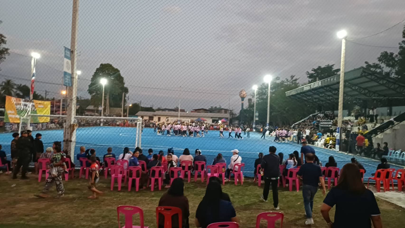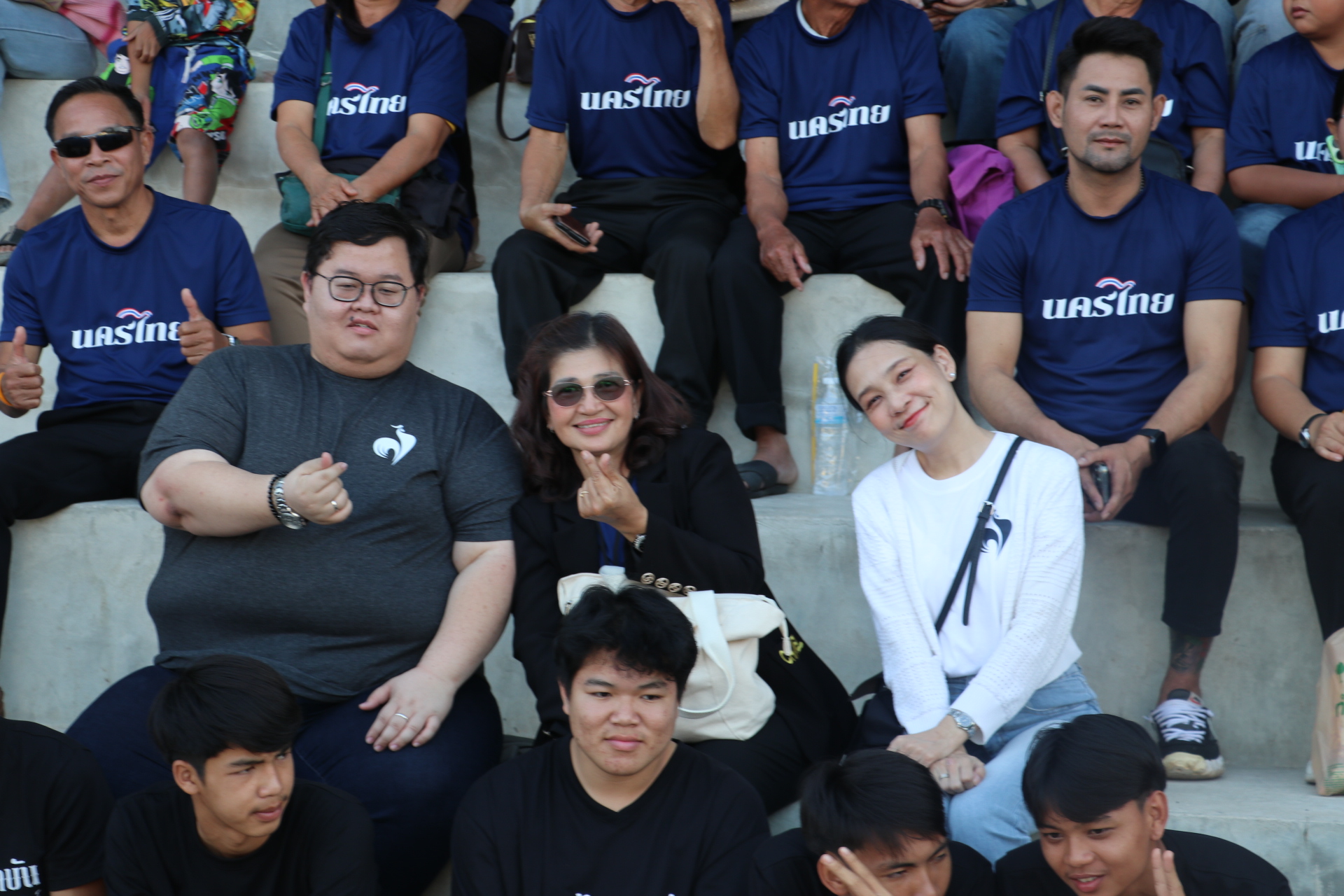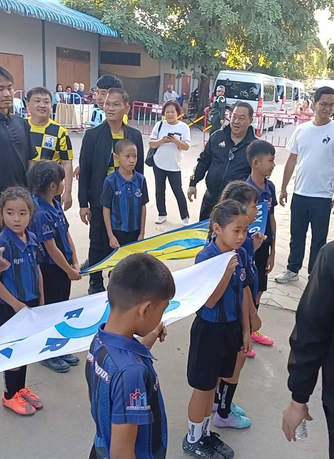 บรรยากาศรอบๆสนามฟุตบอลหญ้าเทียม สนามโรงเรียนป่าซ่าน อ.นครไทย คึกคัก ทั้งเด็ก เยาวชนและผู้ใหญ่ แห่มาชมดาราและชมการแข่งขันฟุตบอล ซึ่งก่อนเปิดการแข่งขัน ได้จัดน้องๆถือธง นำหน้านักฟุตบอลคู่ดาราและ Vip ก่อนเข้าสนาม ทำให้งานดูมีสีสันขึ้นมาทันที เด็กๆต่างกระโกน…ลีซอ ๆๆ พร้อมขอถ่ายรูปคู่กับทีมดาราอีกหลายคนคึกคักฯระหว่างแข่งขันมีเสียงเชียร์เป็นระยะๆจังหวะนักเตะยิงทำประตู