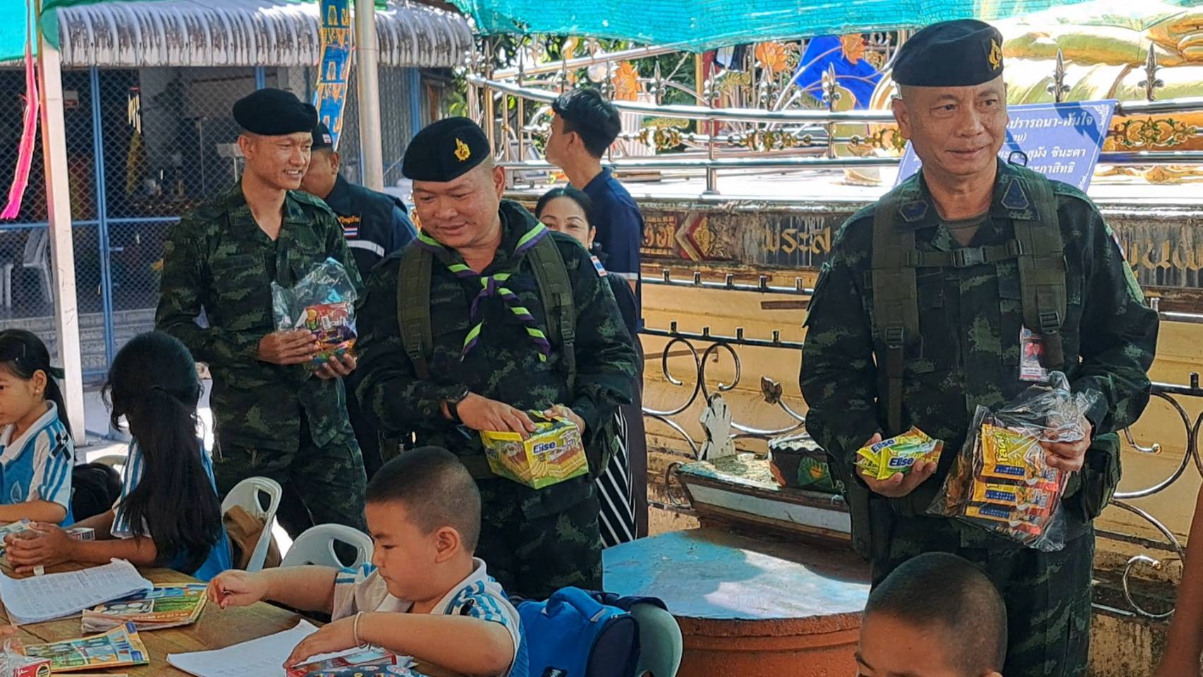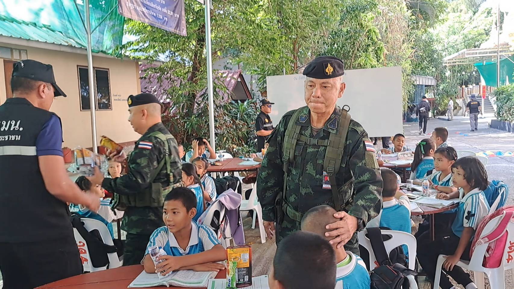 เมื่อวันที่ 9 ธันวาคม 2568 พลตรีไมตรี ชูปรีชา ผู้บัญชาการกองกำลังนเรศวร พร้อมเจ้าหน้าที่ทหารหน่วยเฉพาะกิจราชมนู ลงพื้นที่ตรวจเยี่ยมให้กำลังนักเรียนและครู โรงเรียนบ้านโกนเกน ตำบลมหาวัน อำเภอแม่สอด จังหวัดตาก หลังมีการย้ายห้องเรียนชั่วคราว ไปยังวัดสุวรรณบรรพต และศาลาประชาคมหมู่บ้าน หมู่ที่ 4 และศาลาประชาคมหมู่บ้าน หมู่ที่ 1 ตำบลมหาวัน อำเภอแม่สอด เพื่อความปลอดภัยจากสถานการณ์ไม่สงบฝั่งเมียนมา พร้อมพูดคุยให้กำลังใจครู นักเรียน และมอบขนม เครื่องดื่ม เพื่อสร้างขวัญและกำลังใจแก่เด็กนักเรียนในพื้นที่ชายแดน