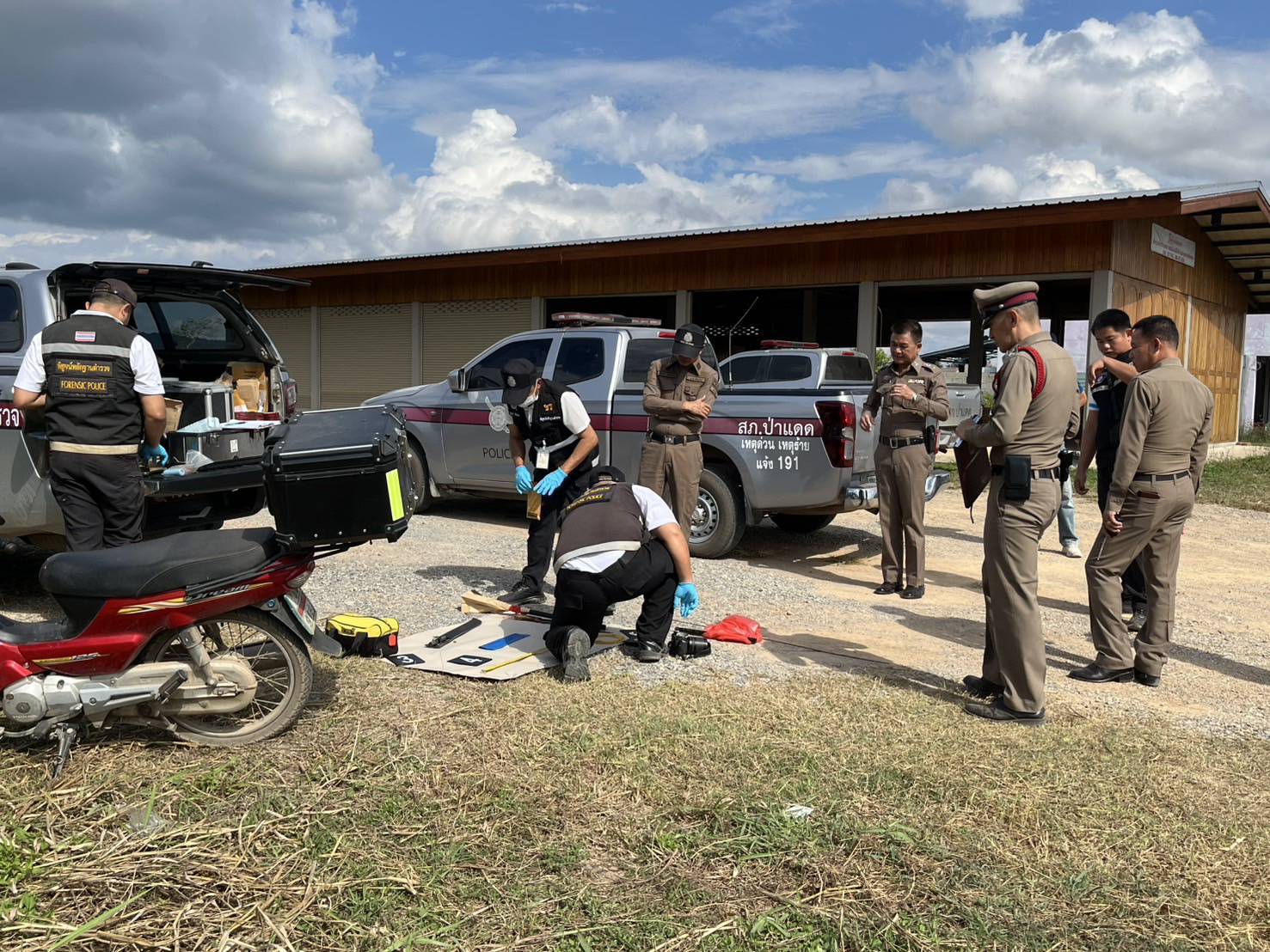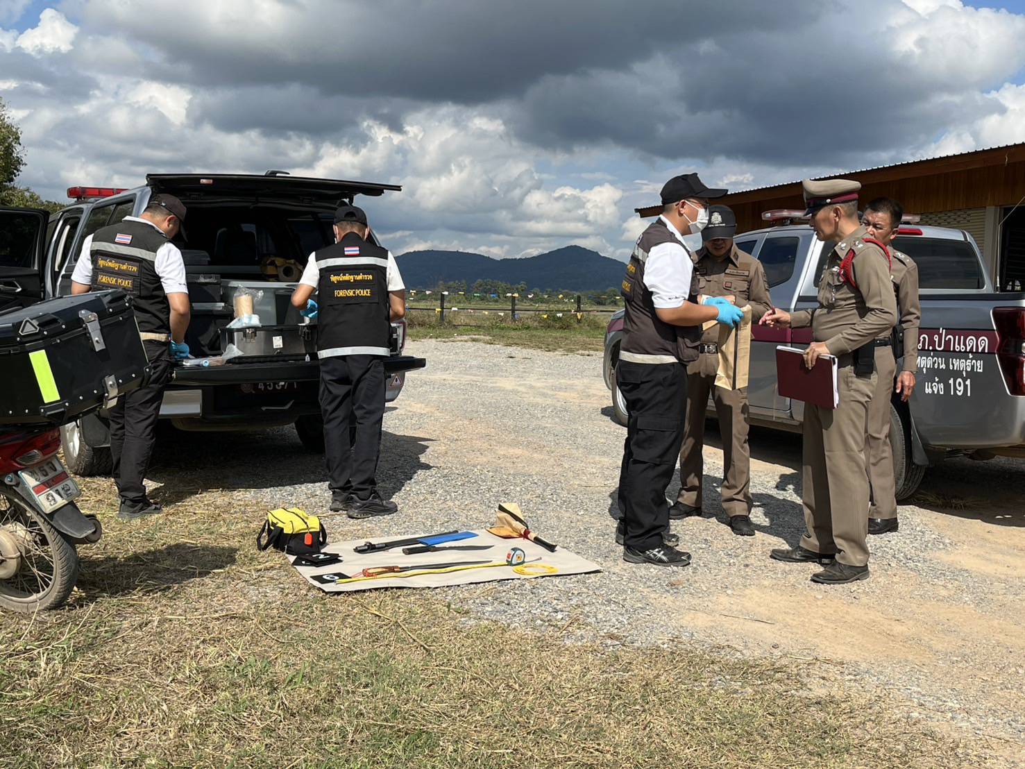ในช่วงบ่ายวันนี้ได้มีเจ้าหน้าที่ตำรวจ สภ.ป่าแดด และพิสูจน์หลักฐานจังหวัดเชียงราย ได้มาตรวจพื้นที่เกิดเหตุ และสามารถตรวจยึดอาวุธของกลางที่ถูกซุกซ่อนอยู่ใกล้ที่เกิดเหตุได้หลายอย่าง ทั้งมีดปลายแหลม และปลอกกระสุนปืนไม่ทราบขนาด แต่จากการตรวจสอบพื้นที่โดยรอบพบว่าเป็นพื้นที่ห่างไกลชุมชน ไม่มีผู้เห็นเหตุการณ์ขณะเกิดเหตุ แต่เจ้าหน้าที่ได้ขอดูภาพวงจรปิดบริเวณใกล้เคียงเพื่อตรวจสอบแล้ว ในเบื้องต้นจากการสอบถามผู้บาดเจ็บ เจ้าหน้าที่พอจะระบุกลุ่มผู้ก่อเหตุได้ในเบื้องต้น คาดเป็นกลุ่มวัยรุ่นแถว ต.ป่าแงะ อ.ป่าแดด และมีวัยรุ่น ต.ดอยลาน อ.เมืองเชียงราย มาร่วมทำร้ายด้วย