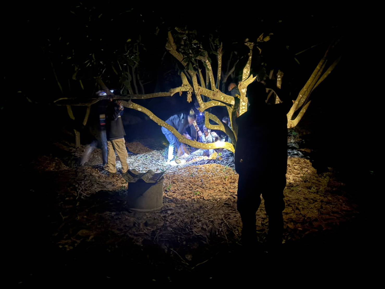 หลังจากเจ้าหน้าที่ไล่ติดตามเข้าไปจนถึงบริเวณสวนลำไย ชายคนดังกล่าวได้ปีนขึ้นไปหลบซ่อนตัวอยู่ด้านบน พร้อมตะโกนโวยวายอ้างว่าตนเองเป็น นักศึกษาวิชาทหาร (นศท.) ที่กำลังอยู่ระหว่างการฝึก และต้องรอคำสั่งจากผู้บังคับบัญชาก่อน จึงจะสามารถลงมารายงานตัวได้ แม้เจ้าหน้าที่จะพยายามสั่งให้ลงมา แต่ชายคนดังกล่าวยังคงดื้อรั้นและไม่ยอมปฏิบัติตามคำสั่ง เจ้าหน้าที่จึงใช้วิธีเจรจาเกลี้ยกล่อม โดยบอกว่าผู้บังคับบัญชาได้มารออยู่ด้านล่างแล้ว และสั่งให้ลงมารายงานตัวทันที ทำให้ชายคนดังกล่าวเริ่มมีท่าทีอ่อนลง ก่อนยอมลงมาจากสวนลำไยในที่สุด จากนั้นได้นำตัวชายคนดังกล่าวขึ้นรถฉุกเฉินของเทศบาลตำบลบ้านต๊ำ ส่งเข้ารับการบำบัดรักษาที่โรงพยาบาลพะเยา