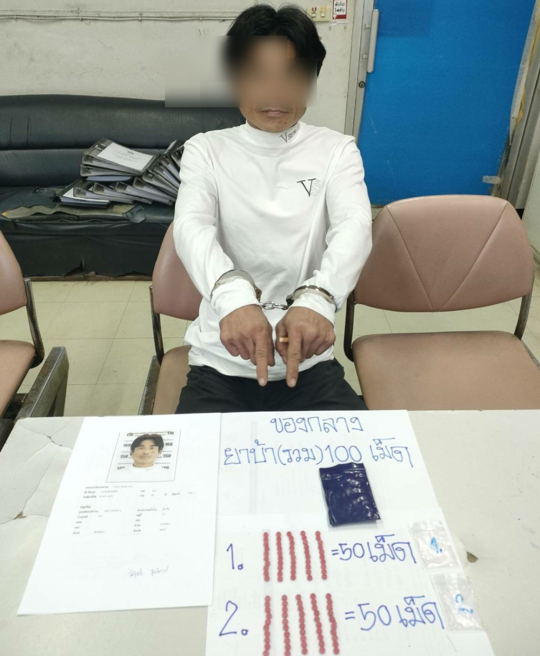 พะเยา รวบคาหนังคาเขา! ตำรวจบุกจับหนุ่มใหญ่วัย 45 ค้ายาบ้า 100 เม็ด