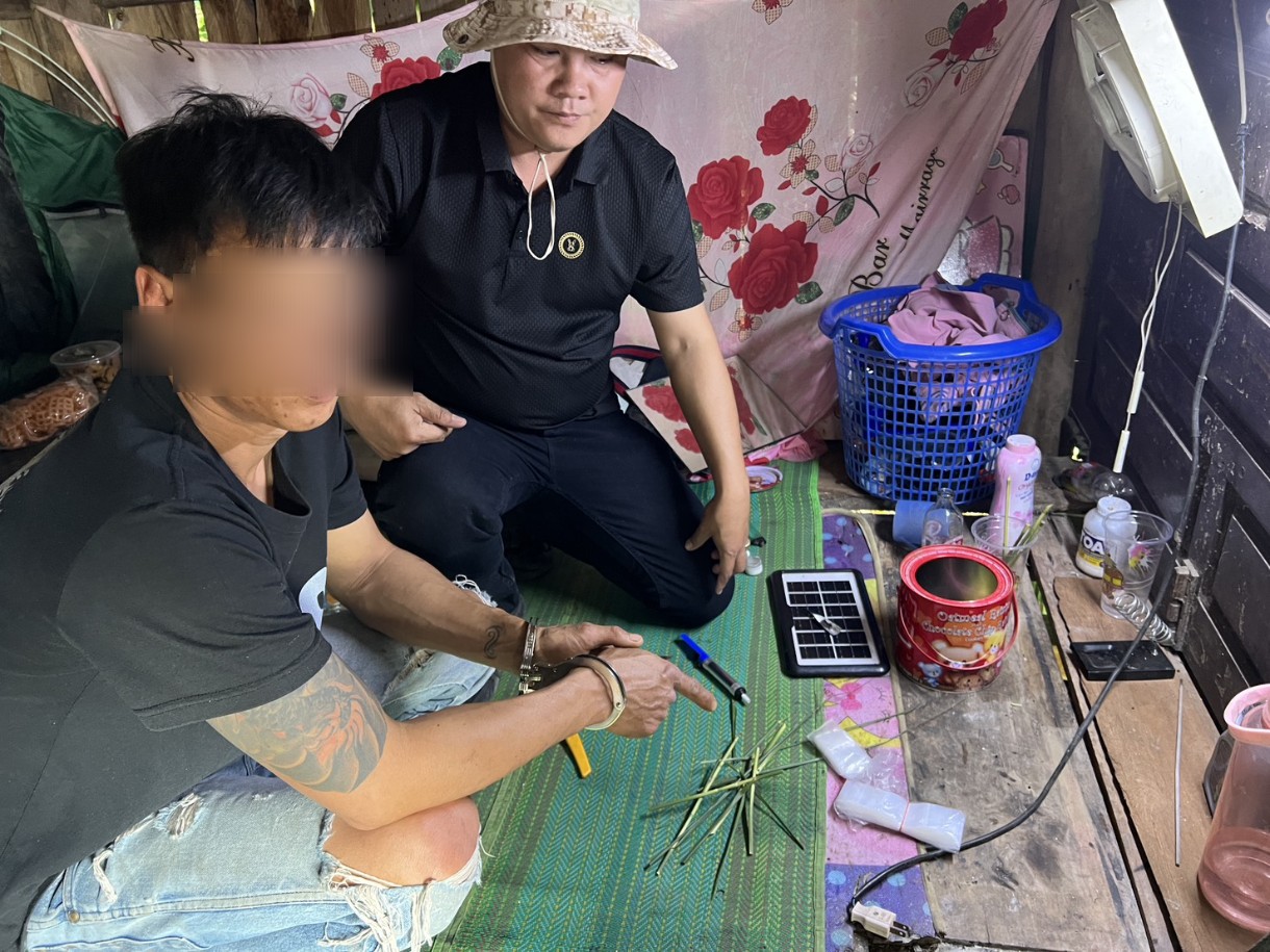 เมื่อเจ้าหน้าที่เดินทางไปถึง พบชายต้องสงสัยอยู่ภายในกระท่อม และขณะเห็นเจ้าหน้าที่ได้พยายามนำสิ่งของบางอย่างไปซุกซ่อนไว้ในกองฟางใกล้ที่พัก เจ้าหน้าที่จึงแสดงตัวเข้าควบคุม จากการสอบถามข้อมูล เบื้องต้นนายบัญชาให้การรับสารภาพว่า ได้เสพยาบ้ามาก่อนหน้านั้น และยินยอมให้ตรวจปัสสาวะ ผลตรวจเบื้องต้นพบสารเสพติดเป็นบวก จากนั้นเข้าตรวจค้นพบของกลาง ยาบ้า 505 เม็ด บรรจุในถุงพลาสติก 3 ถุง ซุกซ่อนอยู่ในกองฟางโทรศัพท์มือถือยี่ห้อ Samsung รุ่น A15 จำนวน 1 เครื่อง เงินสด 1,200 บาท เชื่อว่าได้มาจากการจำหน่ายยาเสพติด