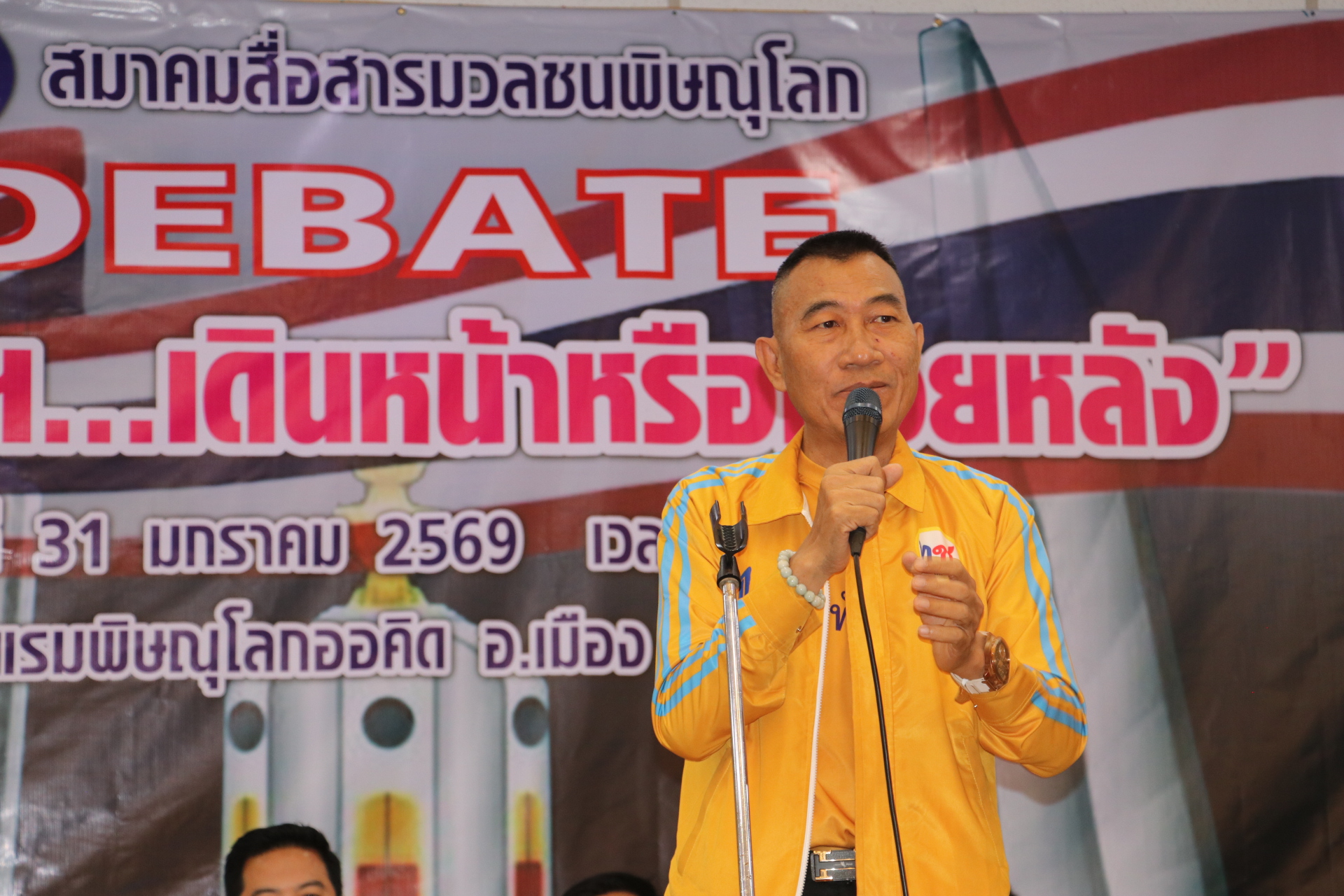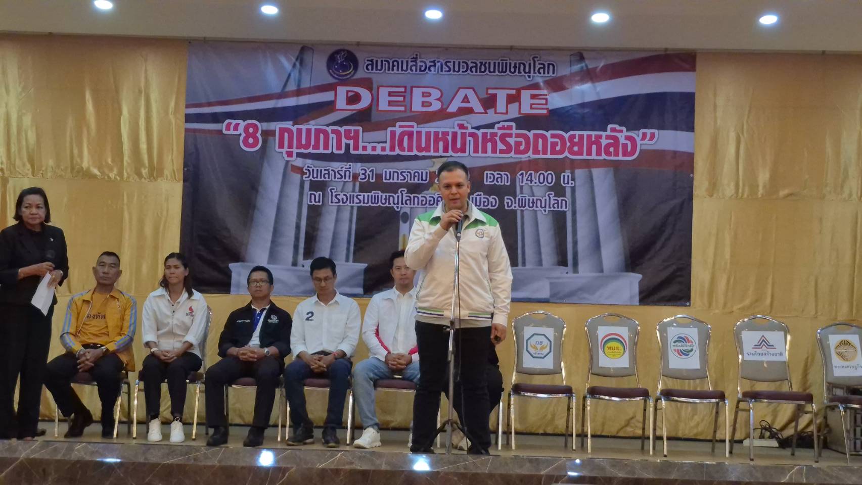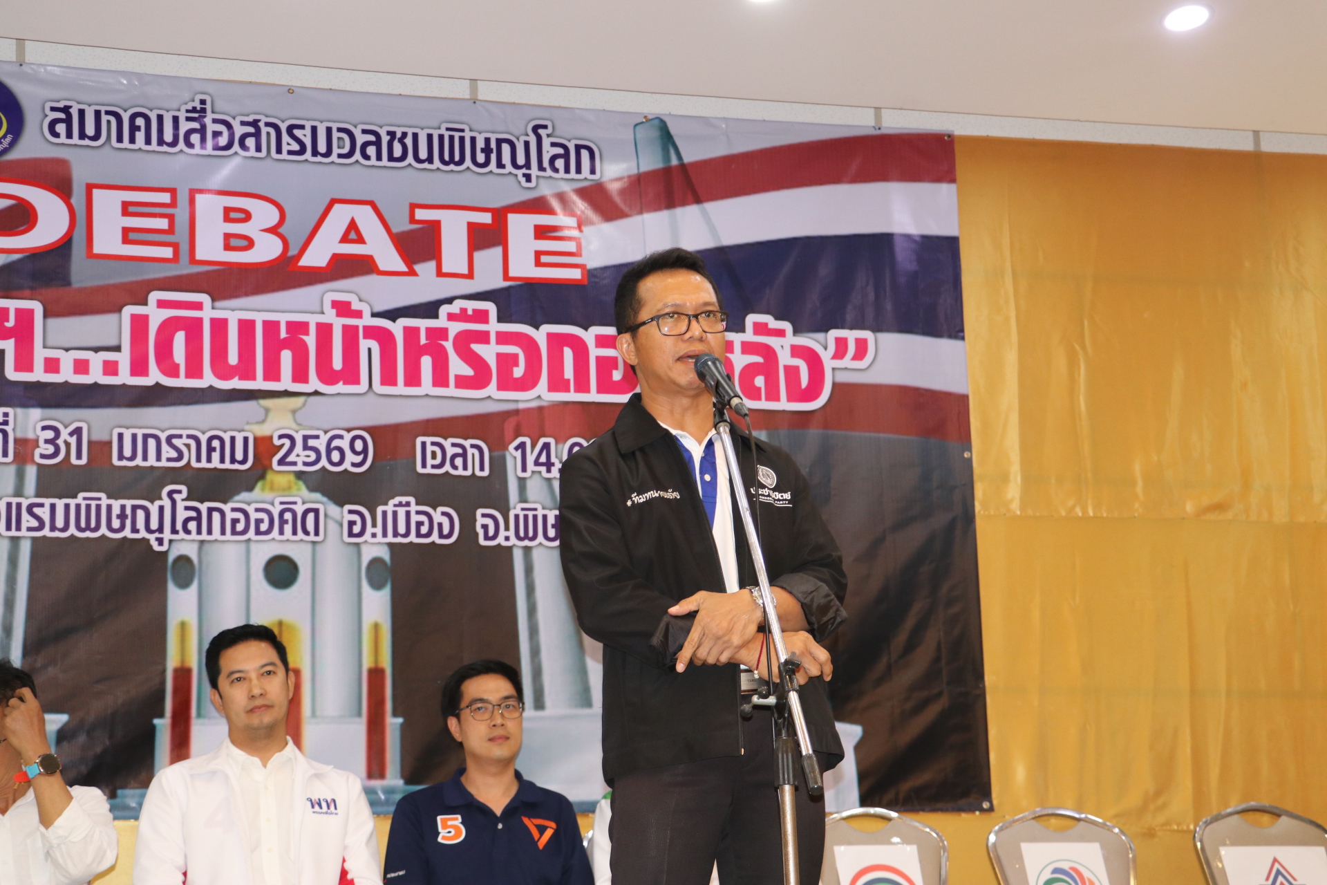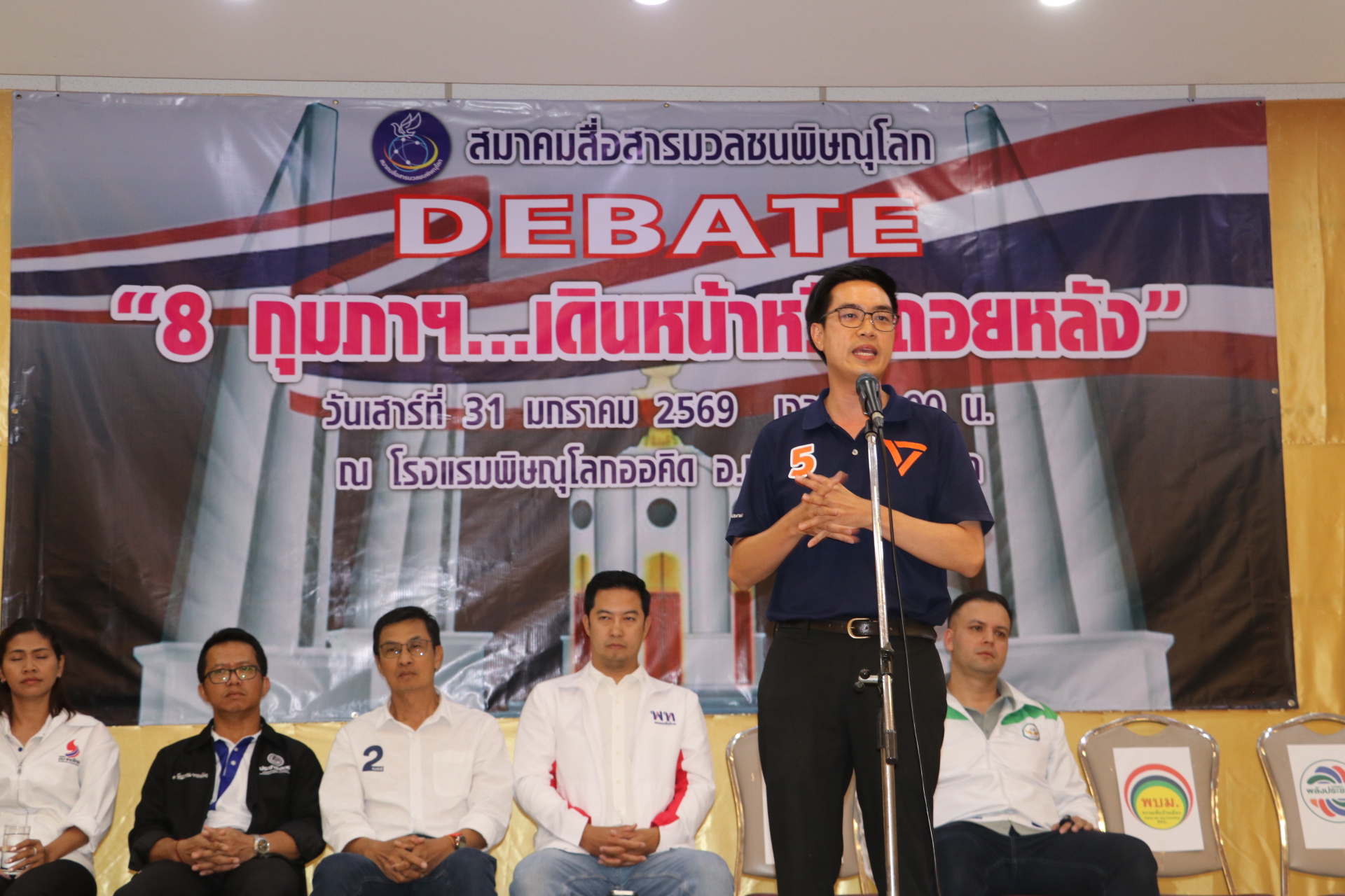 วันที่ 31 มกราคม 2569 เวลา 14:00 น ที่โรงแรมพิษณุโลก ออคิด อำเภอเมือง จังหวัดพิษณุโลก สมาคมสื่อสารมวลชนพิษณุโลก ได้จัดดีเบต ผู้สมัคร สส.พิษณุโลก ส่งตัวแทนผู้สมัครพรรคละ 1 คน โดยกำหนดให้มีการจัดแสดงวิสัยทัศน์ ในอันที่จะให้ประชาชนรับทราบวุฒิภาวะของผู้จะถูกคัดเลือกให้เป็นตัวแทนของประชาชน ภายใต้หัวข้อ” 8 กุมภา เดินหน้า หรือถอยหลัง” โดยมีผู้สนใจเข้าร่วมรับฟังประมาณ 250 คน