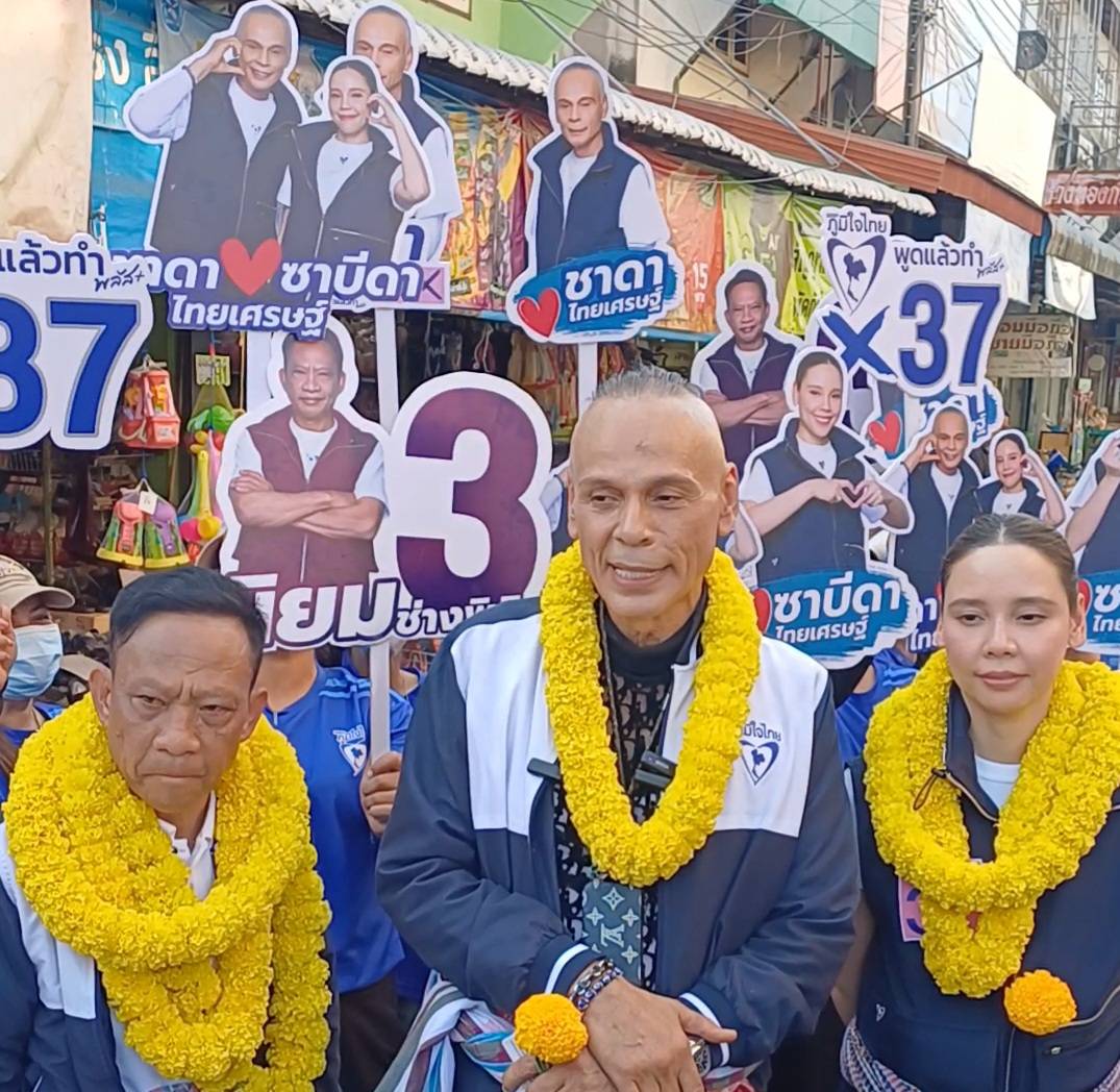 จากนั้น คณะของ“ชาดา -ซาบีดา ไทยเศรษฐ์” เดินทางลงไปหาเสียงที่ตลาดสดราษฎร์ธรรมมาภรณ์ อ.บางระกำ โดยมี น้องมาย- น้องปอน บุตรสาวของนายนิยม ช่างพินิจตะเวนแจกบัตรหาเสียง ท่ามกลางแม่ค้าพ่อค้าแห่คล้องพวงมาลัยและขอถ่ายรูปคู่ โดยเฉพาะ “ชาดา -ซาบีดา ไทยเศรษฐ์” จากนั้นเดินทางไปพบปะกลุ่มทอผ้าทอบ้านคลองเตย อ.บางระกำ และเดินทางต่อไปตลาดปลักแรด อ.บางระกำ บรรยากาศทั่วไปเป็นไปอย่างคึกคัก ประชาชนร่วมสนใจรับฟังการปราศรัยและมอบดอกไม้ให้กำลังใจผู้สมัครตลอดเส้นทาง มีเสียงตะโกนเชียร์ “เบอร์ 3” และสโลแกน “พูดแล้วทำ พลัส” ดังสนั่น เพิ่มกระแสความนิยมเขต4“พรรคภูมิใจไทย” ห้วงโค้ง ชสุดท้าย