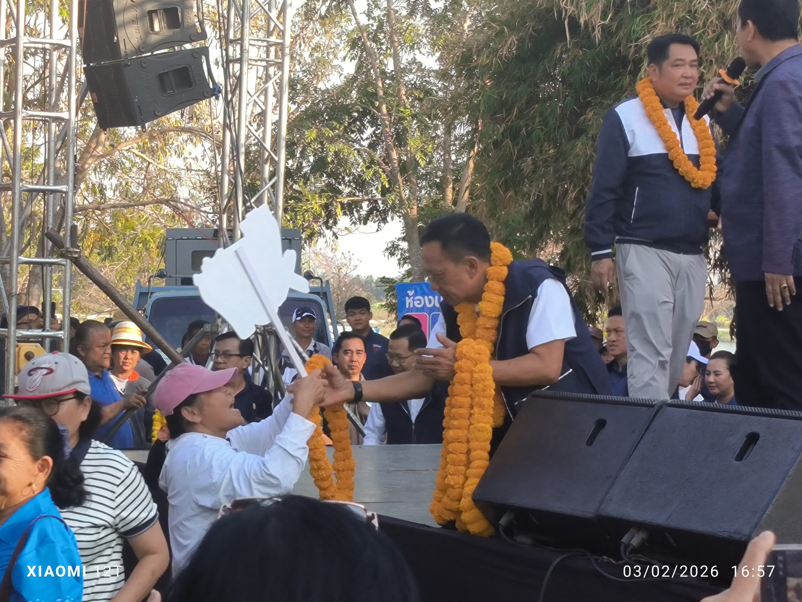 บรรยากาศการปราศรัยเป็นไปอย่างคึกคัก มีประชาชนหลายพันคนเดินทางมารอต้อนรับอย่างอบอุ่นโดยพรรคภูมิใจไทย ตั้งเป้าทวงคืนที่นั่ง สส. เขตนี้ หลังพ่ายแพ้ให้พรรคเพื่อไทย ในการเลือกตั้งปี 2566 ที่ผ่านมา