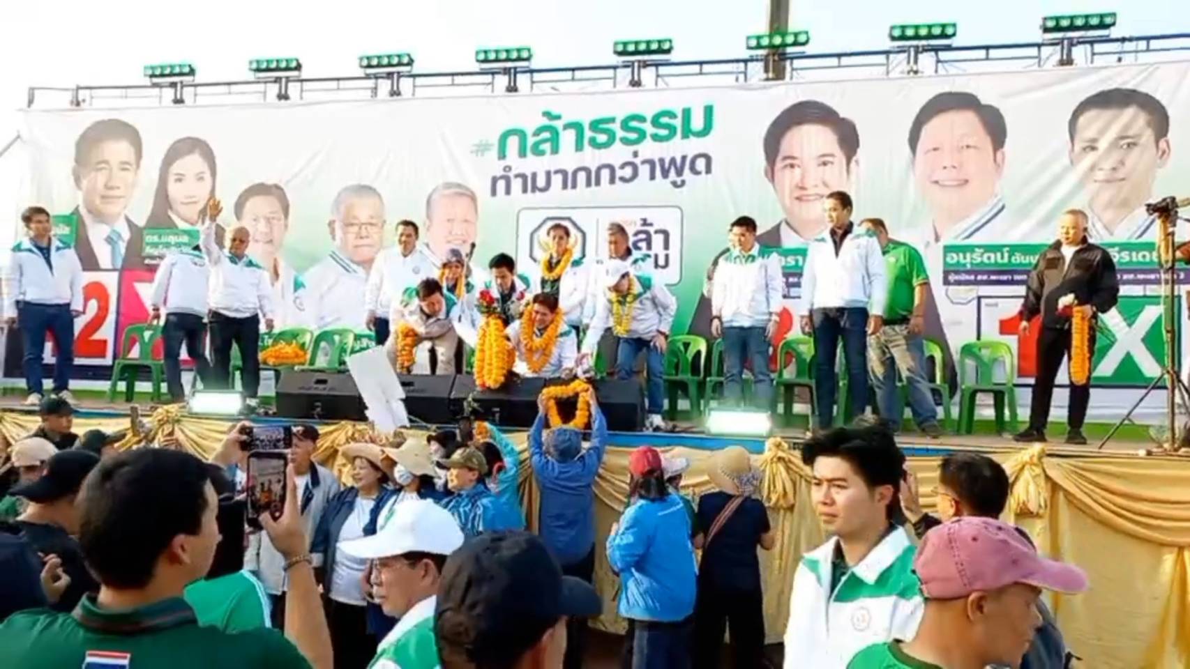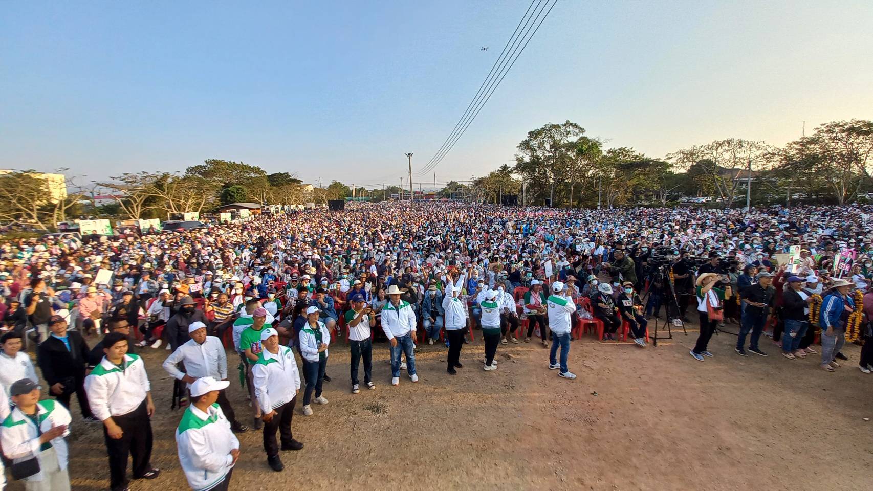 เมื่อเวลา 16.00 น. วันที่ 6 ก.พ. 68 พรรคกล้าธรรมเปิดเวทีปราศรัยใหญ่ที่ตลาดบ้านหม้อ อำเภอเชียงคำ จังหวัดพะเยา โดยมีประชาชนเข้าร่วมรับฟังกว่า 20,000 คน ท่ามกลางสภาพอากาศร้อนจัด ต่างกางร่มป้องกันแดดแน่นพื้นที่ บนเวทีมีแกนนำและอดีต สส.ของพรรค อาทิ นายบุญสิงห์ วรินทร์รักษ์ อดีต สส.บัญชีรายชื่อ ดร.ไพโรจน์ ตันบรรจง อดีต สส.พะเยา 4 สมัย และนายอนุรัตน์ ตันบรรจง ผู้สมัคร สส.พะเยา เขต 2 เบอร์ 1 ร่วมขึ้นเวทีชี้แจงนโยบายและผลงานที่ระบุว่าช่วยพัฒนาจังหวัดพะเยา