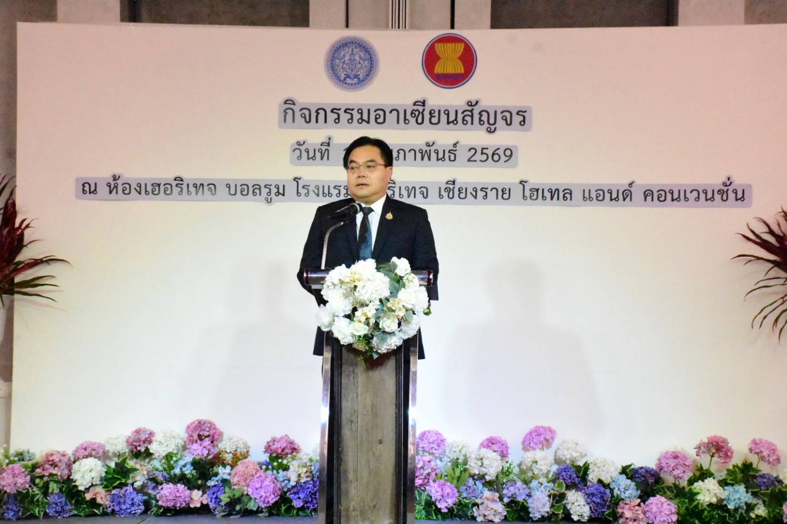 วันที่ 12 ก.พ.69 นางสาวสุชาดา เมฆธารา รองอธิบดีกรมอาเซียน กระทรวงการต่างประเทศ เป็นประธานในพิธีเปิดกิจกรรม “อาเซียนสัญจร”โดยมีนายนรศักดิ์ สุขสมบูรณ์ รองผู้ว่าราชการจังหวัดเชียงราย ผู้แทนหน่วยงานภาครัฐ คณาจารย์ นักศึกษา จากมหาวิทยาลัยแม่ฟ้าหลวงและมหาวิทยาลัยราชภัฏเชียงราย ครูจากโรงเรียนเครือข่ายห้องสมุดอาเซียนในภาคเหนือ 9 จังหวัด สื่อมวลชน และผู้สนใจเข้าร่วมอย่างคึกคัก ที่โรงแรม The Heritage จังหวัดเชียงราย