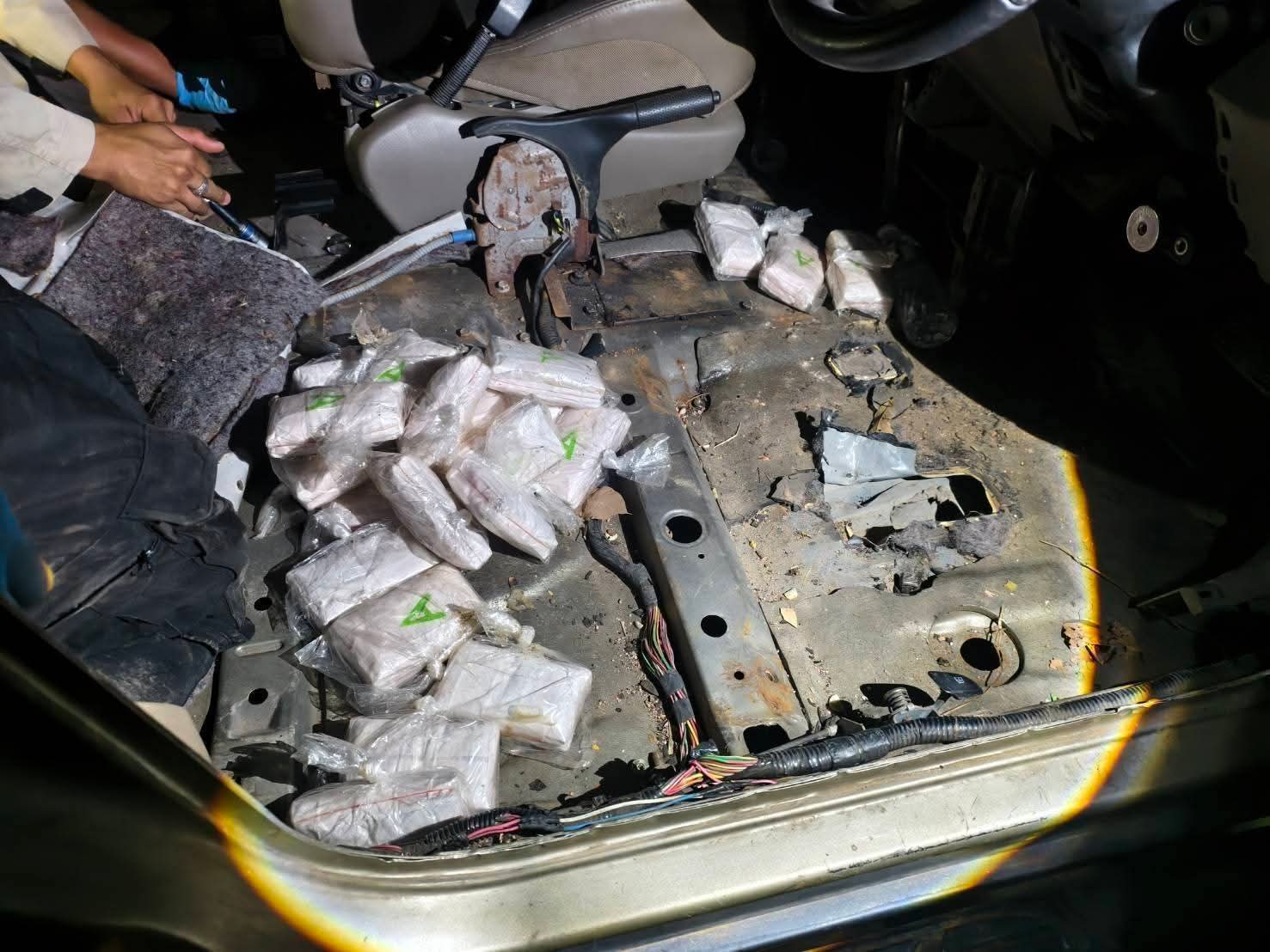 กระทั่งเวลาประมาณ 21.20 น.วันเดียวกันเมื่อเจ้าหน้าที่ตรวจตราไปถึงบริเวณฌาปนสถานหมู่บ้านท่าข้าม ได้ตรวจพบรถยนต์ต้องสงสัยคันดังกล่าวจอดอยู่ภายในป่าช้าท่าทางต้องสงสัยเพราะเป็นช่วงเวลากลางดึกแล้วจึงไม่น่าจะมีพิธีกรรมใดๆ เจ้าหน้าที่จึงตรวจบริเวณโดยรอบไม่พบบุคคลแสดงตัวเป็นเจ้าของจึงได้ตรวจสอบภายในรถปรากฎว่าพบที่เบาะหลังคนขับพบบรรทุกกระสอบฟางสีขาวมาจำนวน 1 กระสอบ เมื่อเปิดดูภายในกระสอบพบบรรจุยาเสพติดให้โทษประเภท 1 (ยาบ้า) จำนวน 82,000 เม็ด