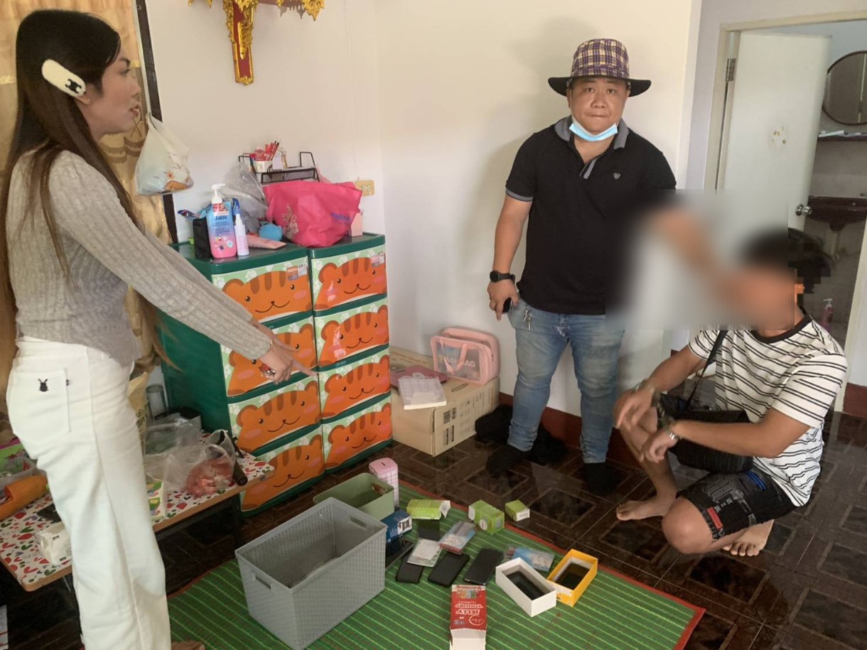ระหว่างจับกุมนายกฤษฏา พยายามวิ่งหนี ทำให้ตำรวจวิ่งติดตามเจอ น.ส.แสนสุขหรือหญิง สัญชาติลาว (ทราบชื่อนามสกุลภายหลัง) โยนสิ่งของทิ้งบริเวณด้านหลังบ้าน จึงได้ควบคุมตัวให้หยุดและขอทำการตรวจค้นตัว ผลปรากฏว่าพบโทรศัพท์มือถือและเงินสดจำนวน 104,000 บาท อยู่ในกระเป๋าสะพายที่ น.ส.แสนสุขฯ สะพายอยู่