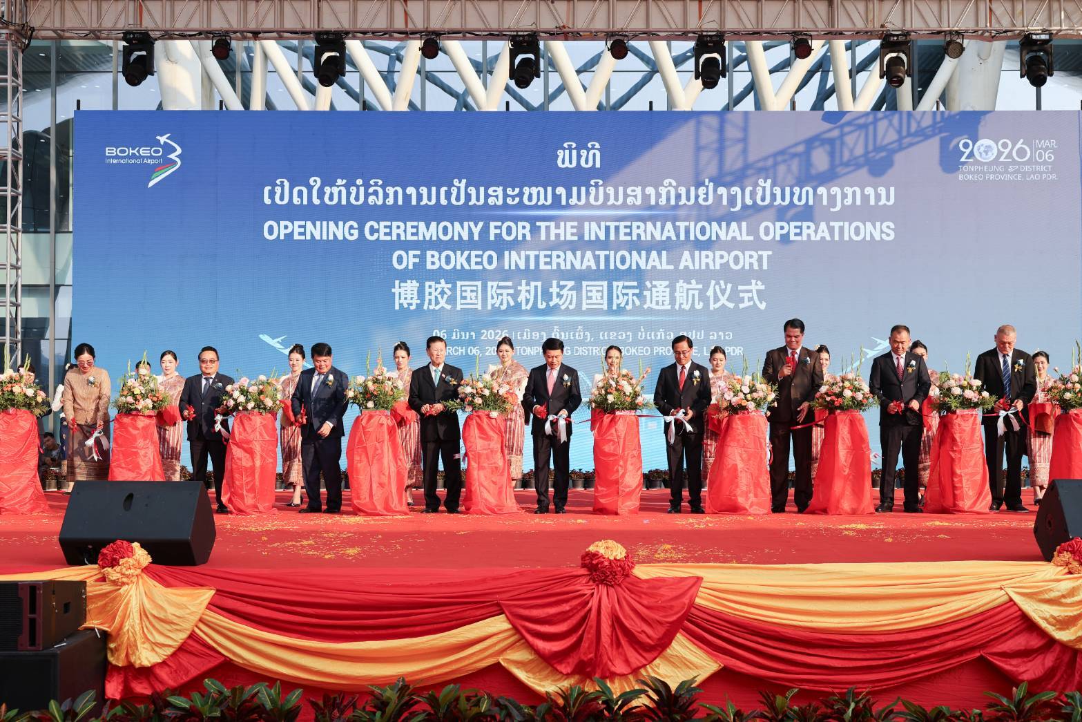 เมื่อช่วงบ่ายวันที่ 6 มีนาคม 2569 แขวงบ่อแก้ว สาธารณรัฐประชาธิปไตยประชาชนลาว (สปป.ลาว) มีพิธีเปิดใช้งาน “สนามบินสากลบ่อแก้ว” อย่างเป็นทางการ โดยมีนายสะเหลิมไซ กมมะสิด รองนายกรัฐมนตรี สปป.ลาว เป็นประธานในพิธี พร้อมด้วยนายสมสะหวาด เล่งสะหวัด อดีตรองนายกรัฐมนตรี นายเหล็กไหล สีวิไล รัฐมนตรีว่าการกระทรวงโยธาธิการและขนส่ง พลจัตวา แป้นคำ บุดจันแพง เลขาธิการคณะบริหารงานพรรคแขวงบ่อแก้ว รวมทั้งผู้บริหารจากหน่วยงานภาครัฐและผู้แทนจากเขตเศรษฐกิจพิเศษสามเหลี่ยมทองคำเข้าร่วมอย่างพร้อมเพรียง