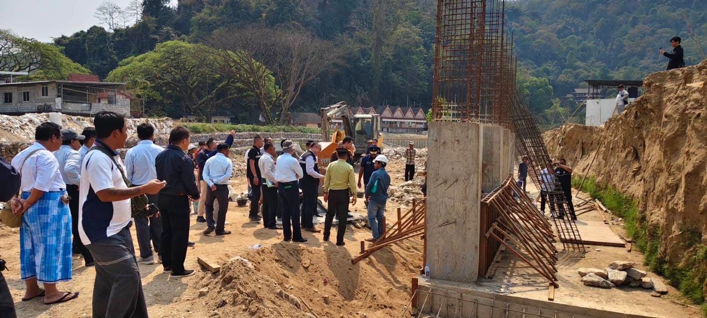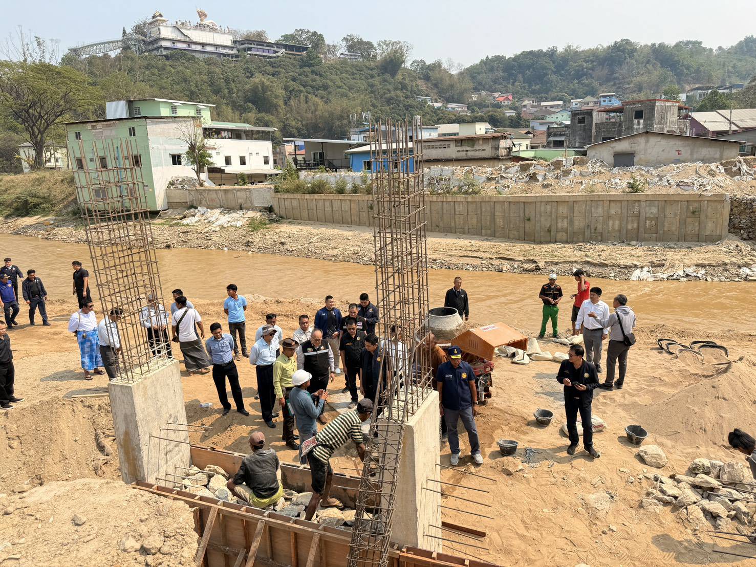 โดยมีระยะความยาว 1,420 ฟุต กว้าง 10 ฟุต สูง 32 ฟุต และหนา 2 ฟุต 6 นิ้ว ผลการตรวจสอบ ได้ดำเนินการเสร็จไปแล้วประมาณ 35% โดยจะเร่งให้แล้วเสร็จช่วงสงกรานต์นี้ และได้เน้นย้ำให้ฝ่ายเมียนมารีบตักดินออกจากแม่น้ำสายบริเวณจุดก่อสร้างโดยเร็ว