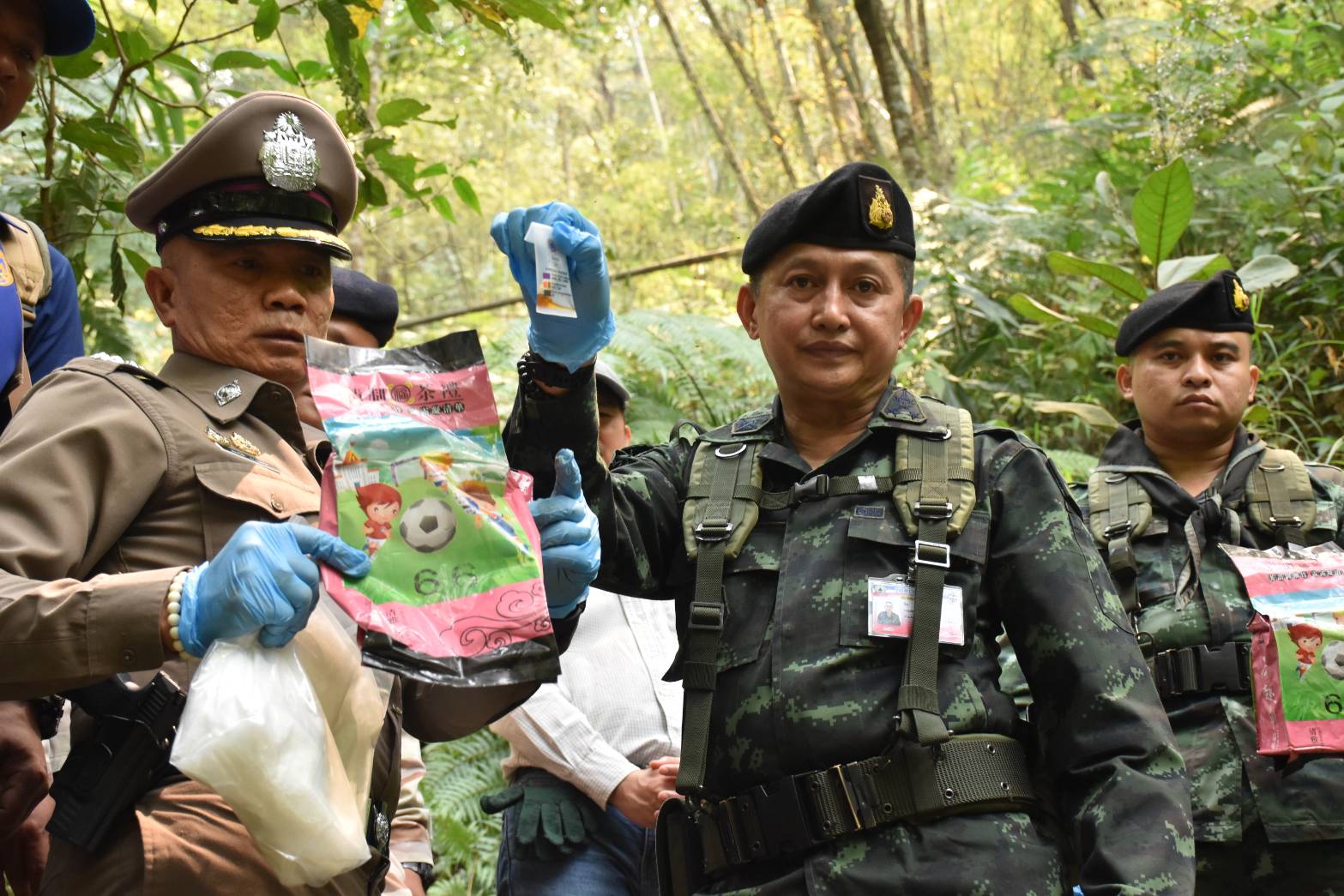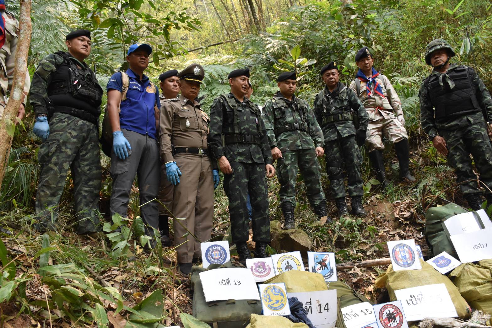 หน่วยจึงได้แสดงตัวเพื่อขอทำการตรวจค้น แต่กลุ่มบุคคลดังกล่าวได้ใช้อาวุธปืนไม่ทราบชนิดและขนาดยิงใส่ฝ่ายเรา จึงเกิดการปะทะกัน ประมาณ 5 นาที ผลการปะทะ ฝ่ายเราปลอดภัย หน่วยได้จัดกำลังเพิ่มเติม จำนวน 2 ชุดปฏิบัติการ และ ชุดบังคับอากาศยานไร้คนขับ เข้าควบคุมบริเวณพื้นที่ปะทะ และทำการตรวจสอบพื้นที่เกิดเหตุ ตรวจพบกลุ่มขบวนการฯ เสียชีวิต จำนวน 2 ศพ และตรวจพบกระสอบดัดแปลงเป็นเป้สะพายหลัง จำนวน 18 กระสอบ ภายในบรรจุ ยาเสพติดให้โทษประเภท 1 (ยาไอซ์) รวมจำนวน 289 กิโลกรัม ซองกระสุนปืน AK – 47 จำนวน 1 ซอง พร้อมกระสุน จำนวน 1 นัด ปลอกกระสุน จำนวน 5 ปลอก และ โทรศัพท์มือถือ จำนวน 2 เครื่อง