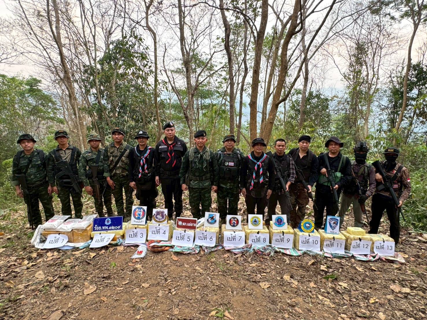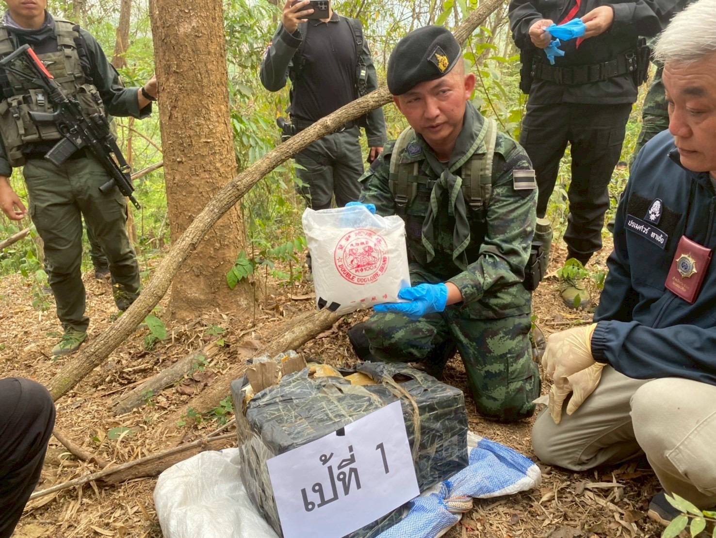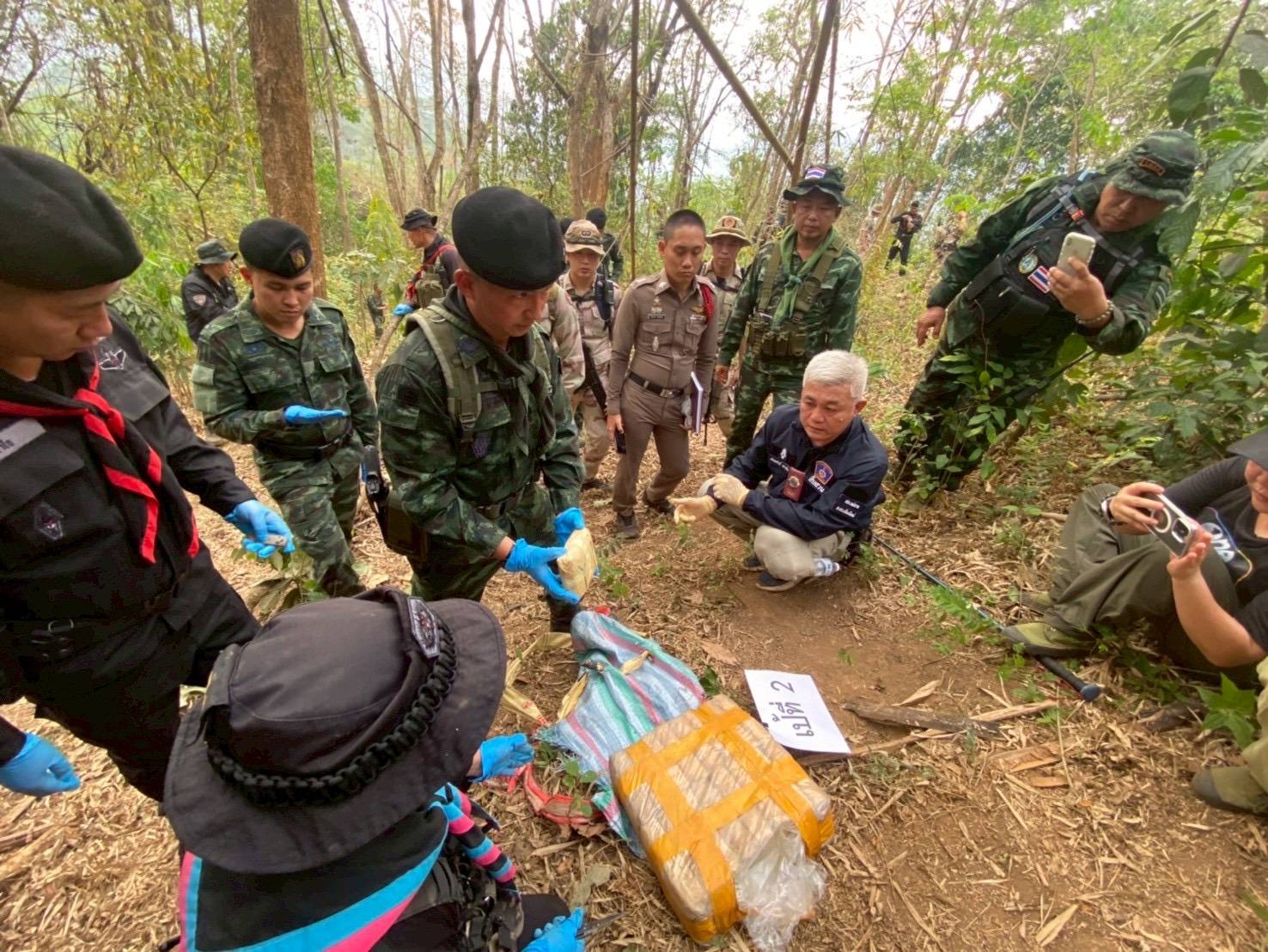 หน่วยจึงจัดชุดปฏิบัติการเพิ่มเติม จำนวน 2 ชุดปฏิบัติการ วางกำลังควบคุมพื้นที่เกิดเหตุ และเข้าตรวจสอบพื้นที่เกิดเหตุ ผลการตรวจสอบพบกระสอบดัดแปลงเป็นเป้สะพาย จำนวน 13 กระสอบ ภายในบรรจุยาเสพติดให้โทษประเภท 1 (ยาบ้า) จำนวน 12 กระสอบๆละ 100,000 เม็ด รวมจำนวนประมาณ 1,200,000 เม็ด, ยาเสพติดให้โทษประเภท 1 (เฮโรอีน) จำนวน 1 กระสอบ น้ำหนักประมาณ 2.1 กิโลกรัม